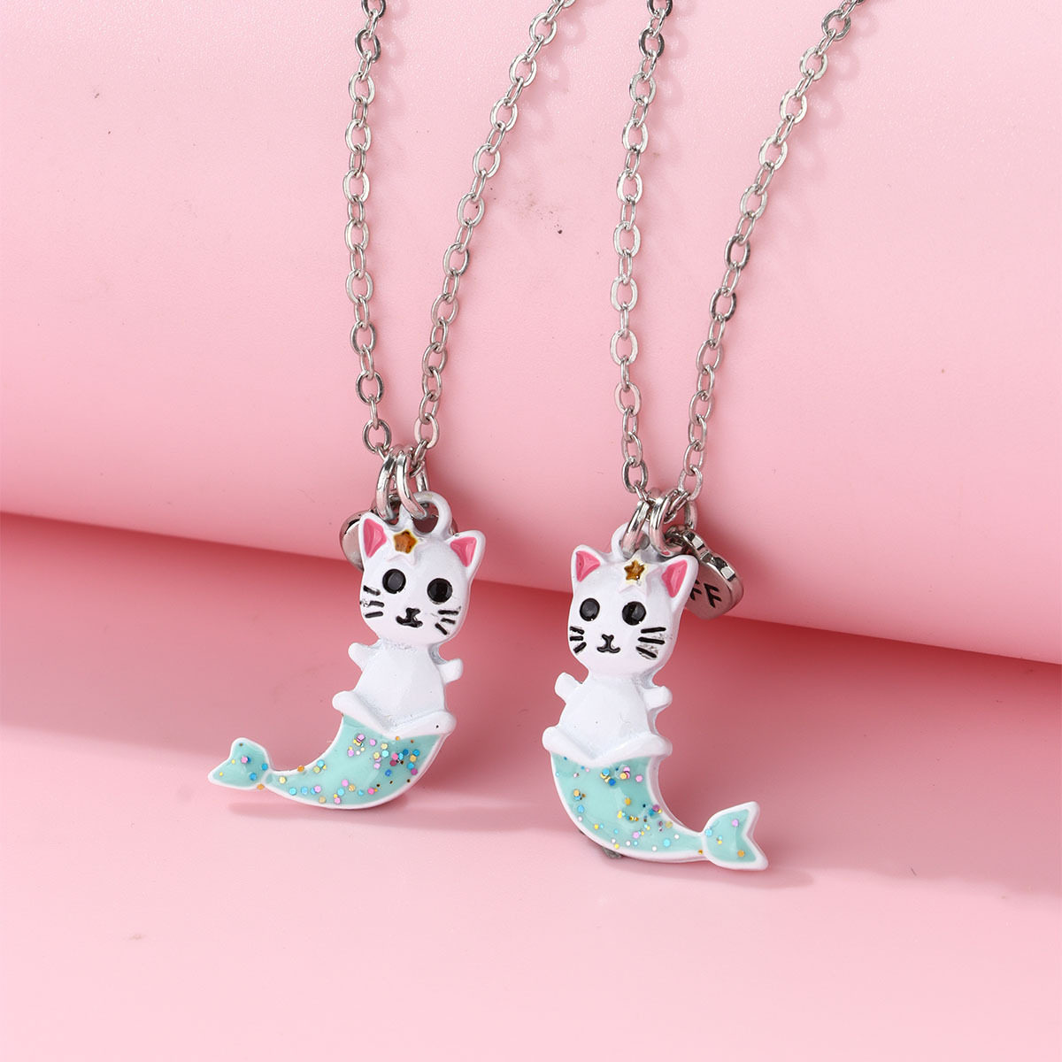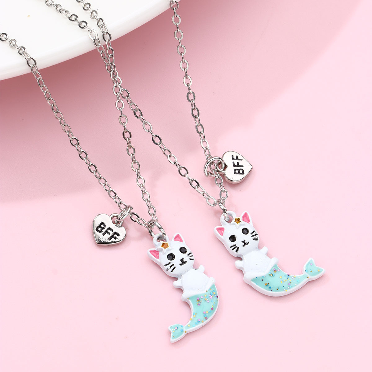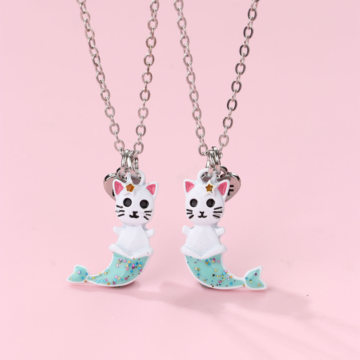 📚 儿童项链学生党女童闺蜜仙气二人友谊一对女款鱼尾猫咪吊坠毛衣链