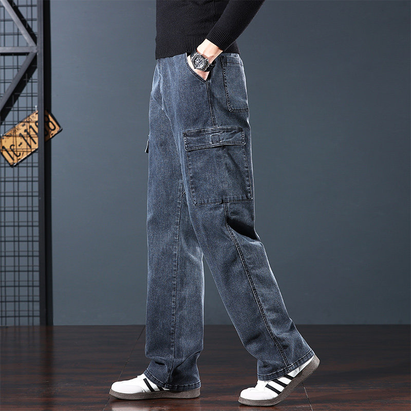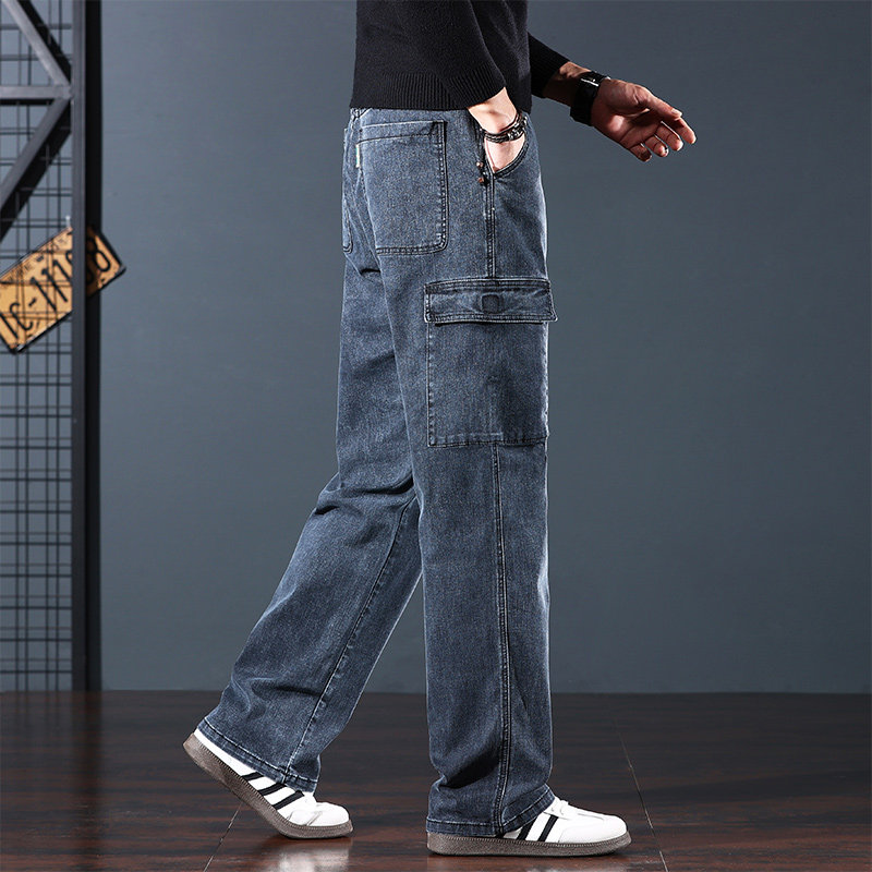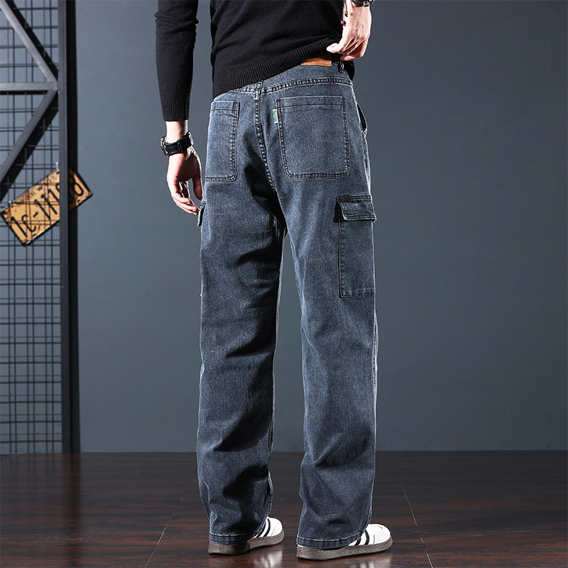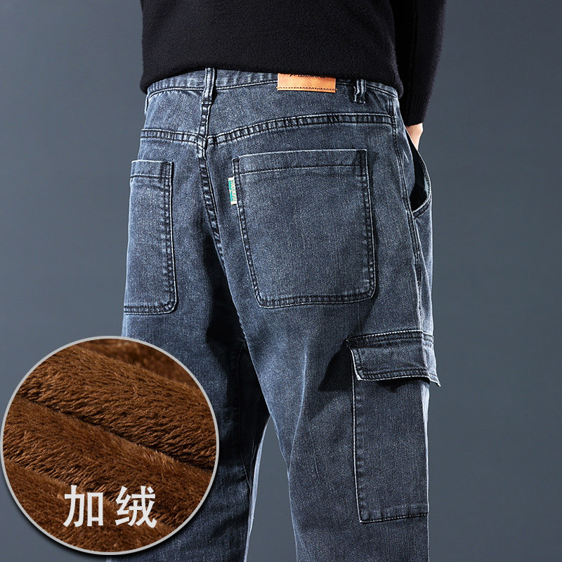 📚 2025新款加绒加厚保暖牛仔裤男士秋冬款宽松直筒多口袋工装长裤子
