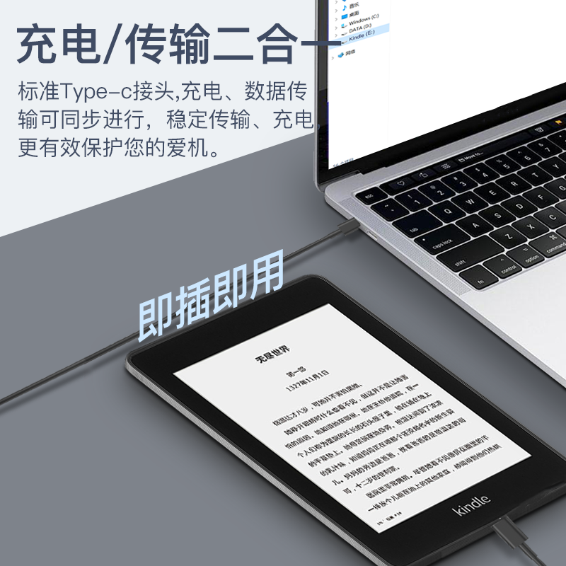 📚 适用原配亚马逊kindle paperwhite5电纸书数据线KPW5充电线TYPE-C加长USB-C kindlepaperwhite5充电