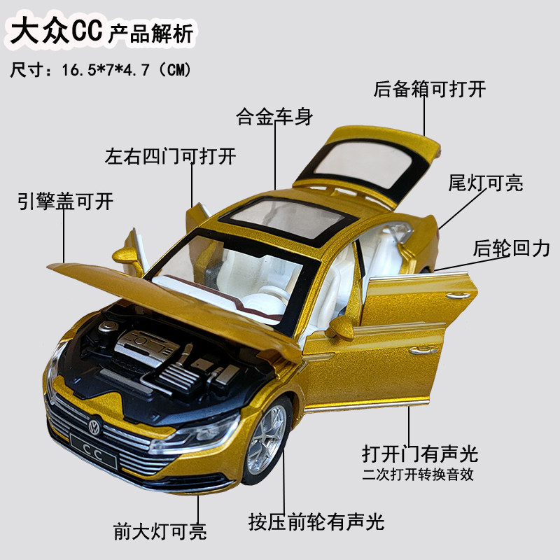 📚 大众CC合金属小汽车模型声光回力儿童玩具车仿真一汽轿车摆件男孩