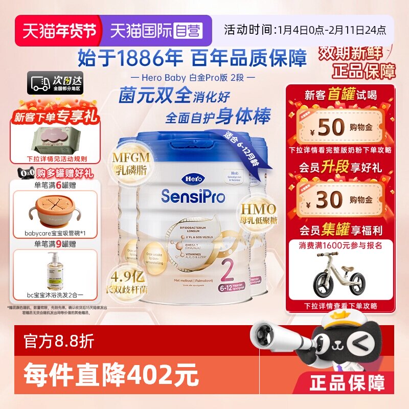 📚 【自营】Hero Baby白金版Pro原装进口婴幼儿配方奶粉2段*3