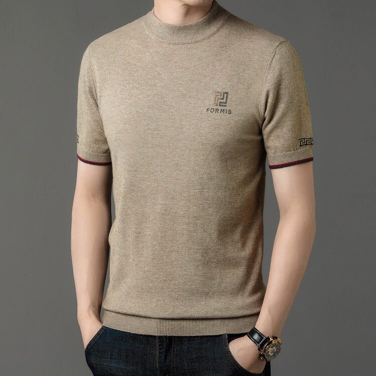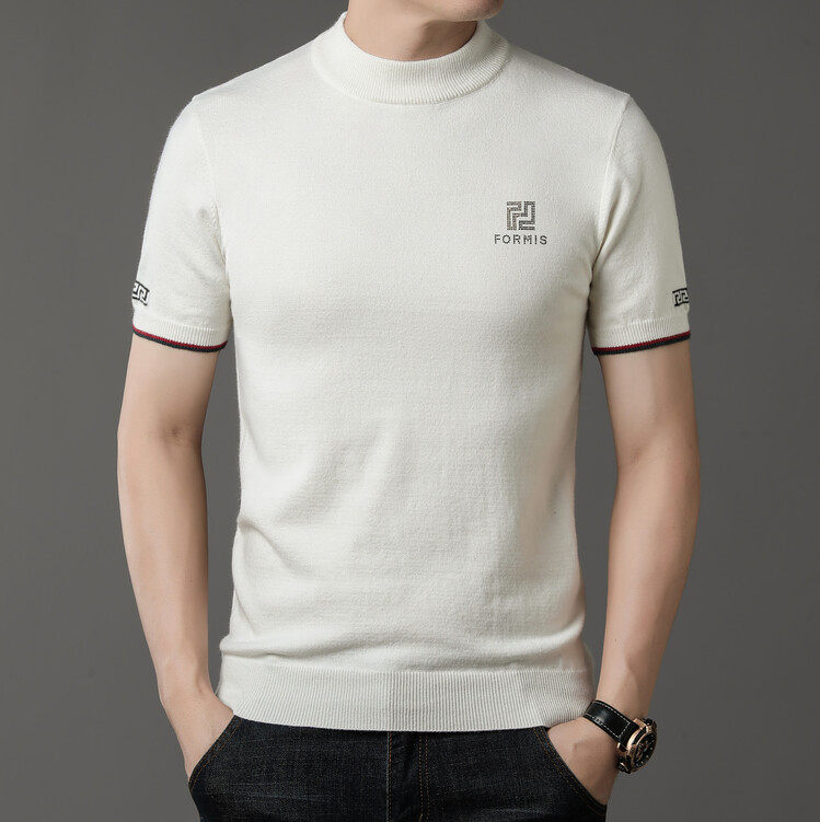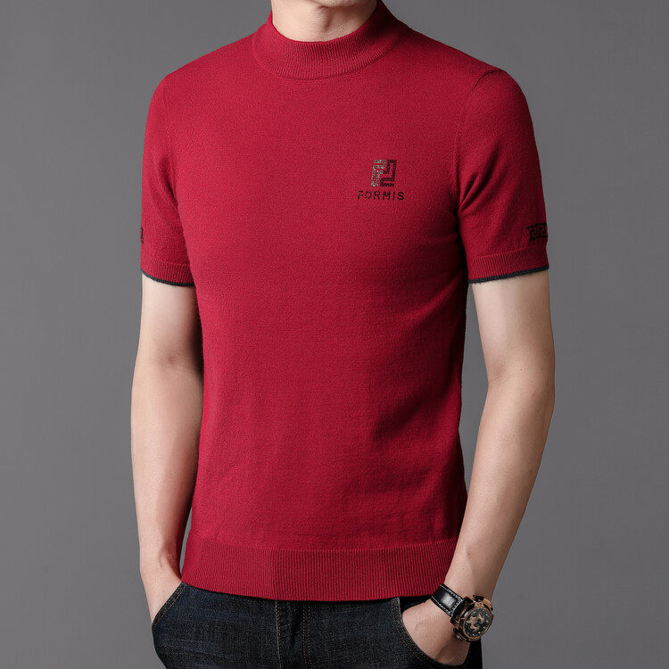 📚 男士针织短袖毛衣男半高领半袖羊毛衫秋冬半截袖打底衫修身线衣潮