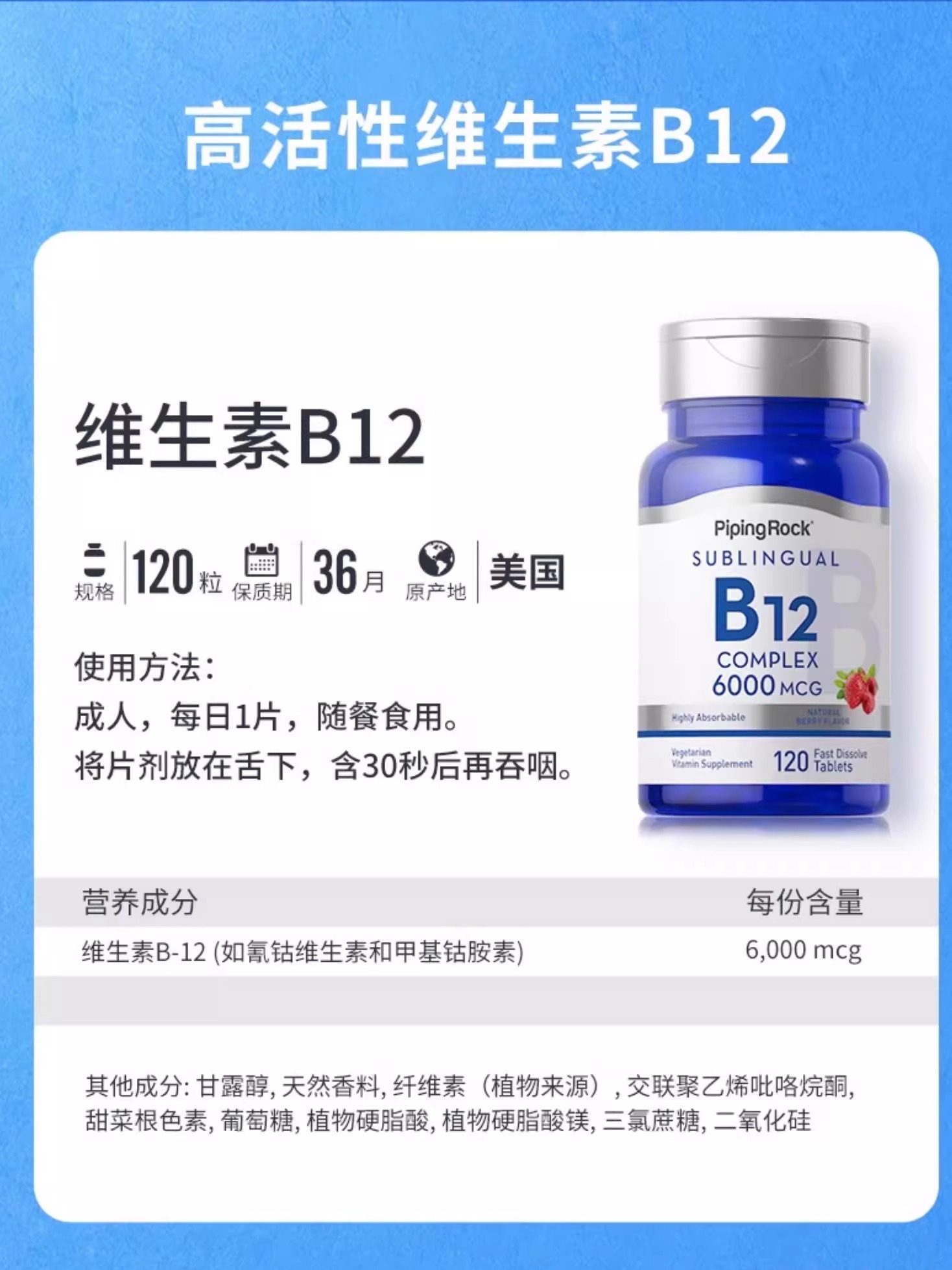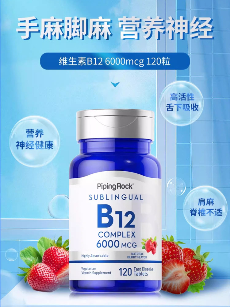 📚 pipingrock甲钴胺营养修复神经维生素b12美国原装进口官方旗舰店