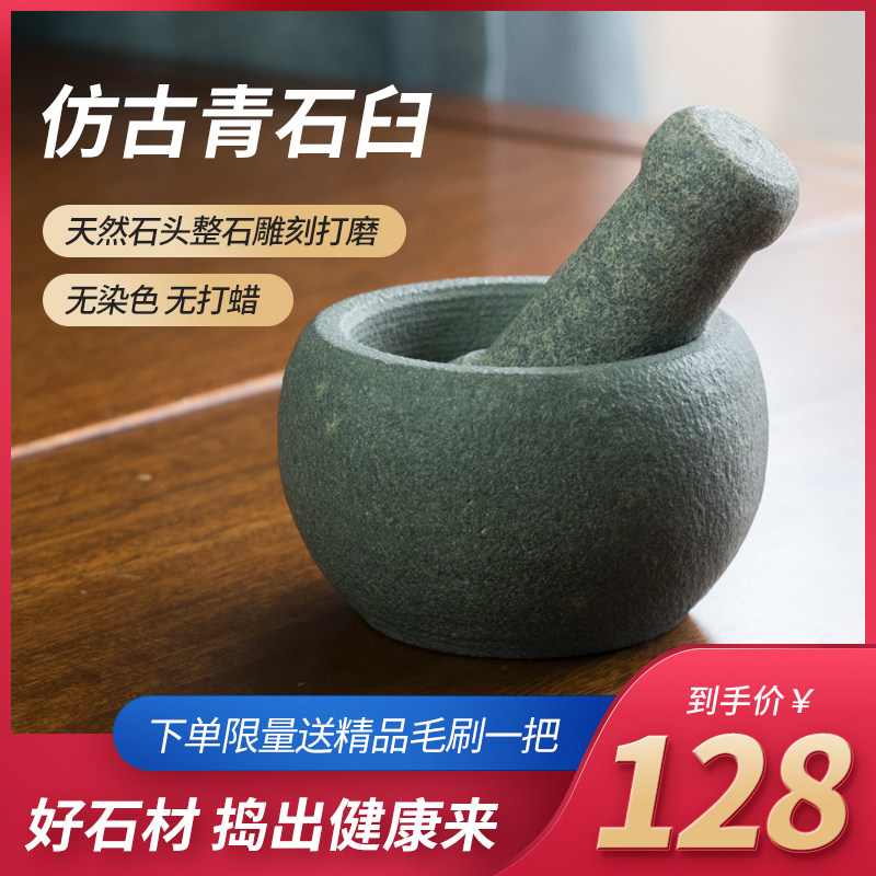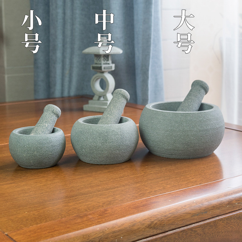 📚 仿古天然青石臼大号蒜泥器老中式蒜臼子点茶配件家用蒜蓉研磨神器