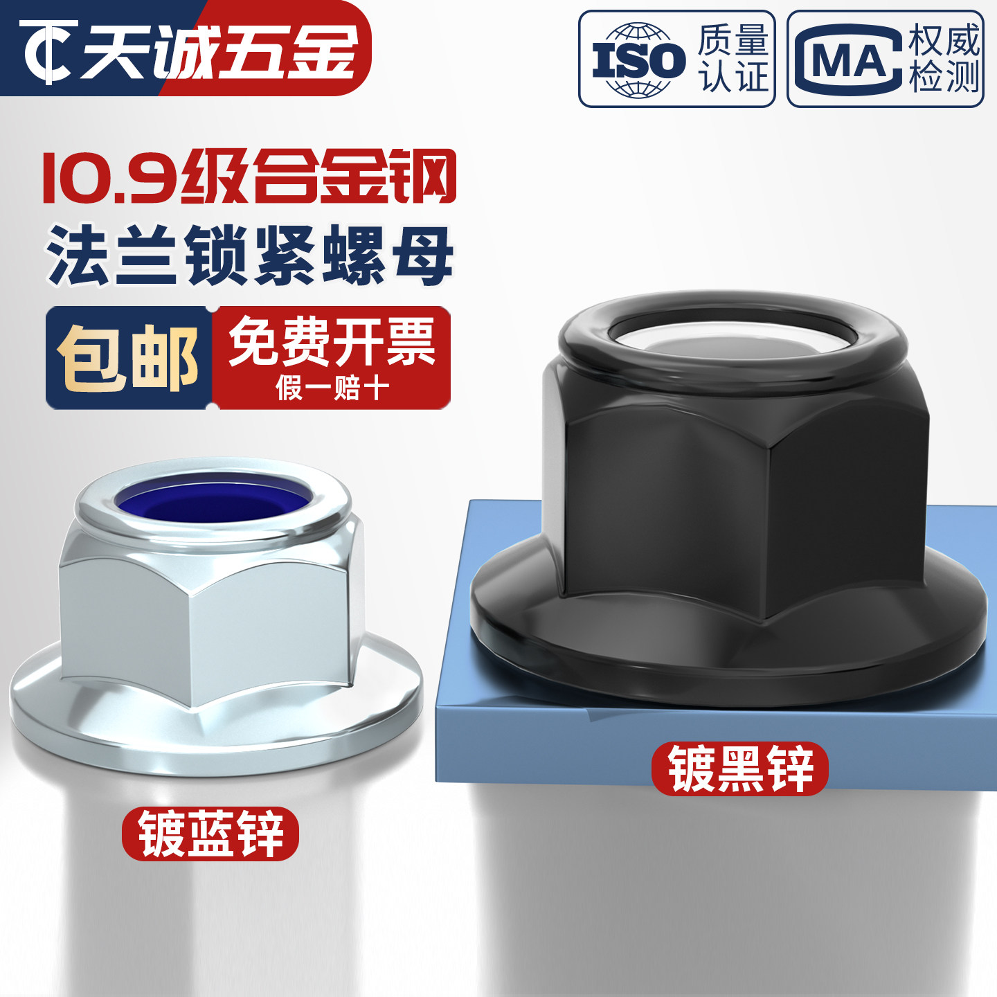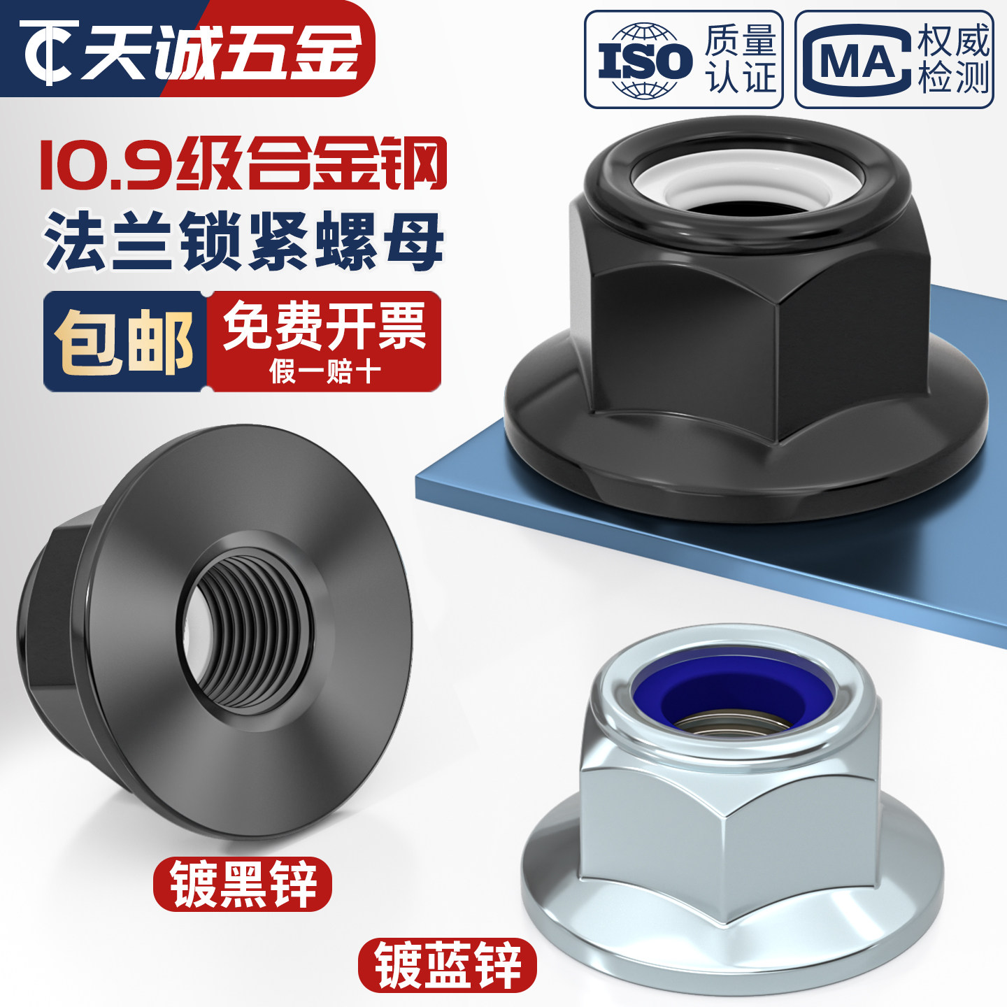 📚 10.9级尼龙自锁紧法兰六角螺母GB6183高强度防松镀锌螺丝帽M5-M20