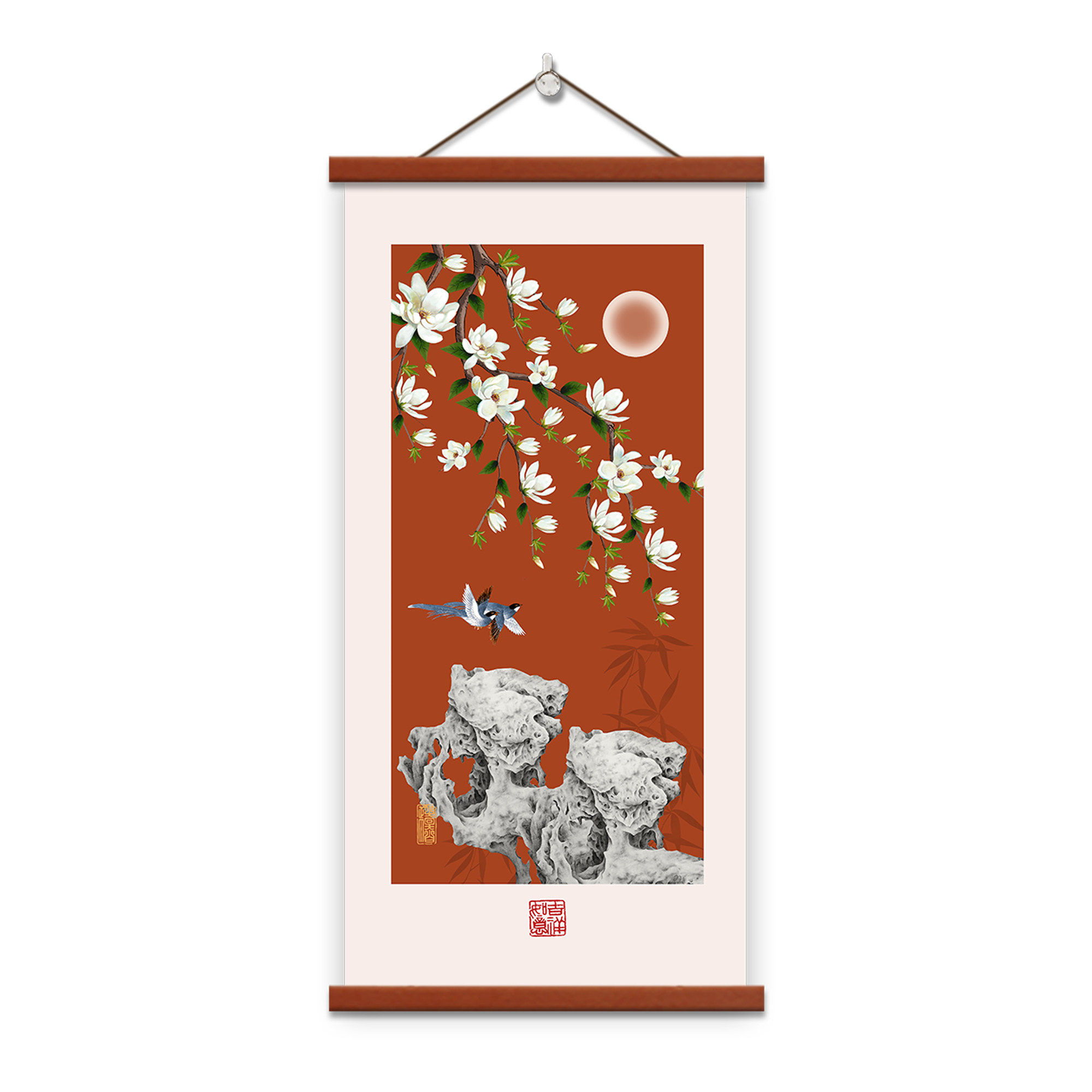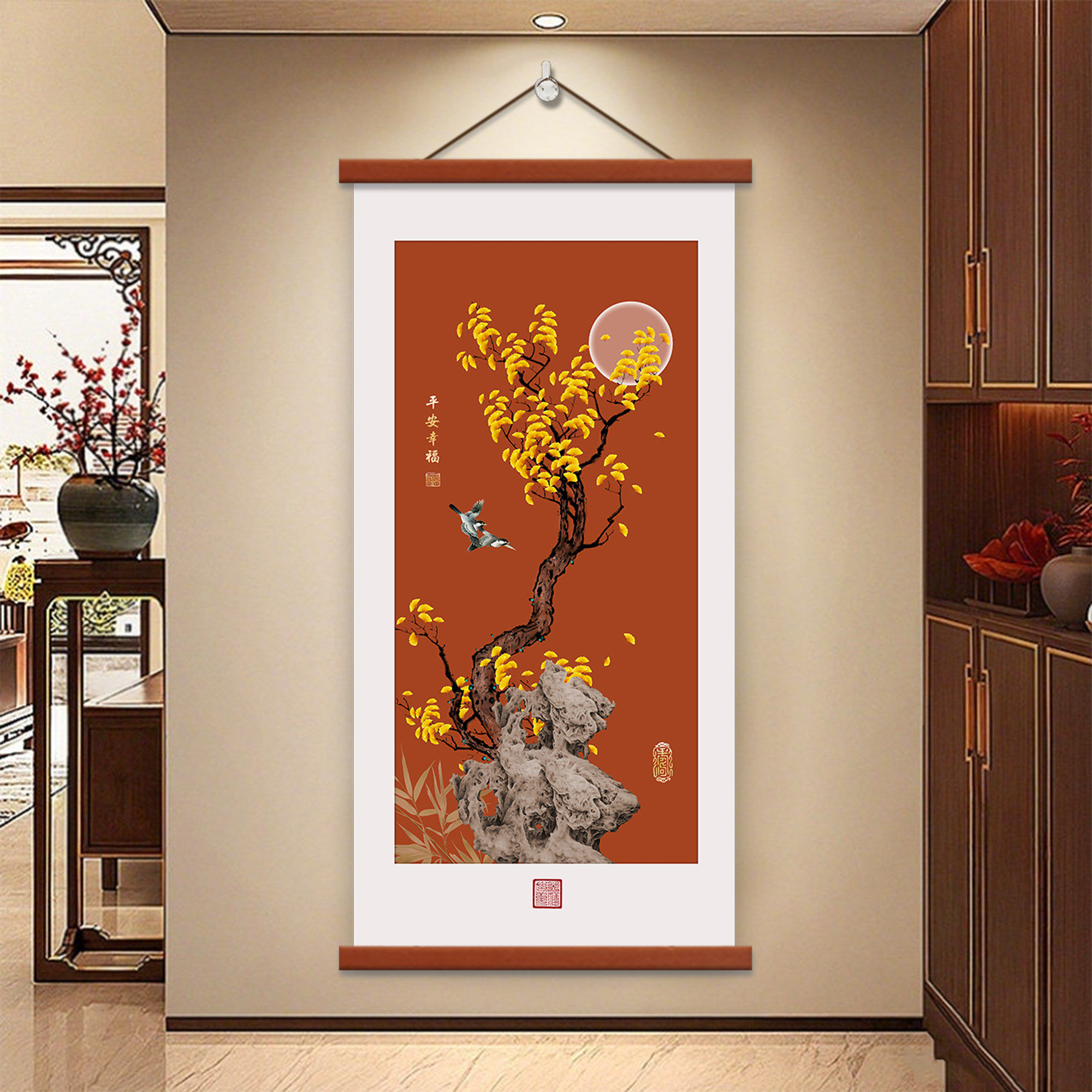 📚 喜上枝头玄关装饰画新中式入户正对门挂画红色寓意好走廊过道壁画