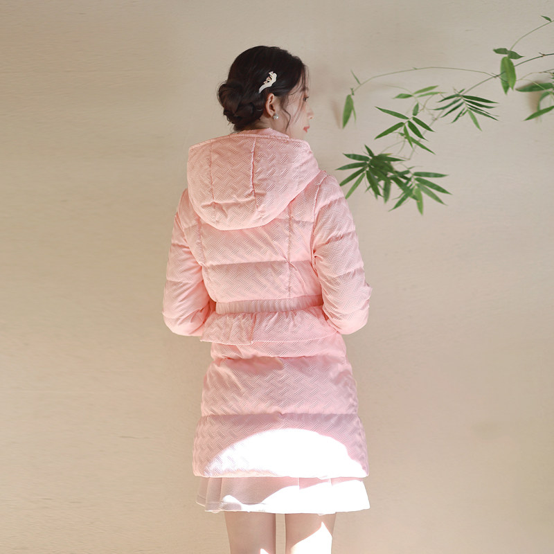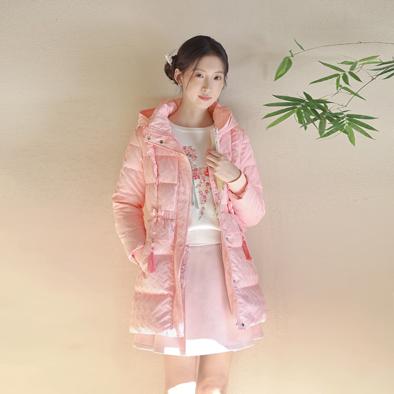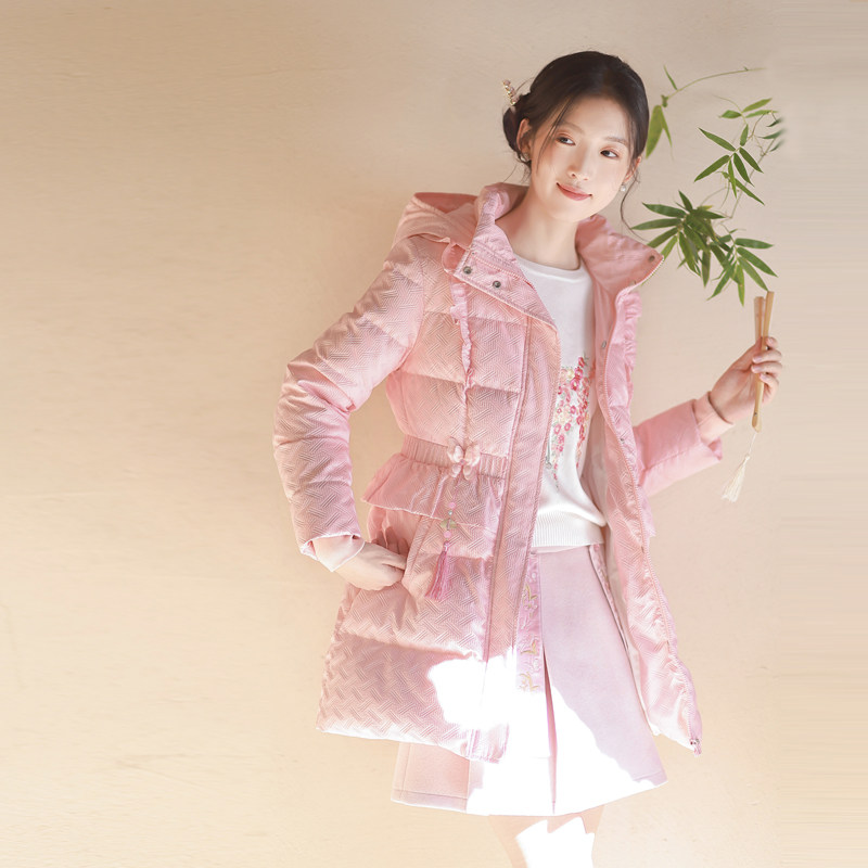 📚 ATAR甜美淑女冬装蝴蝶流苏白鸭绒羽绒服 木耳边拼接连帽保暖外套