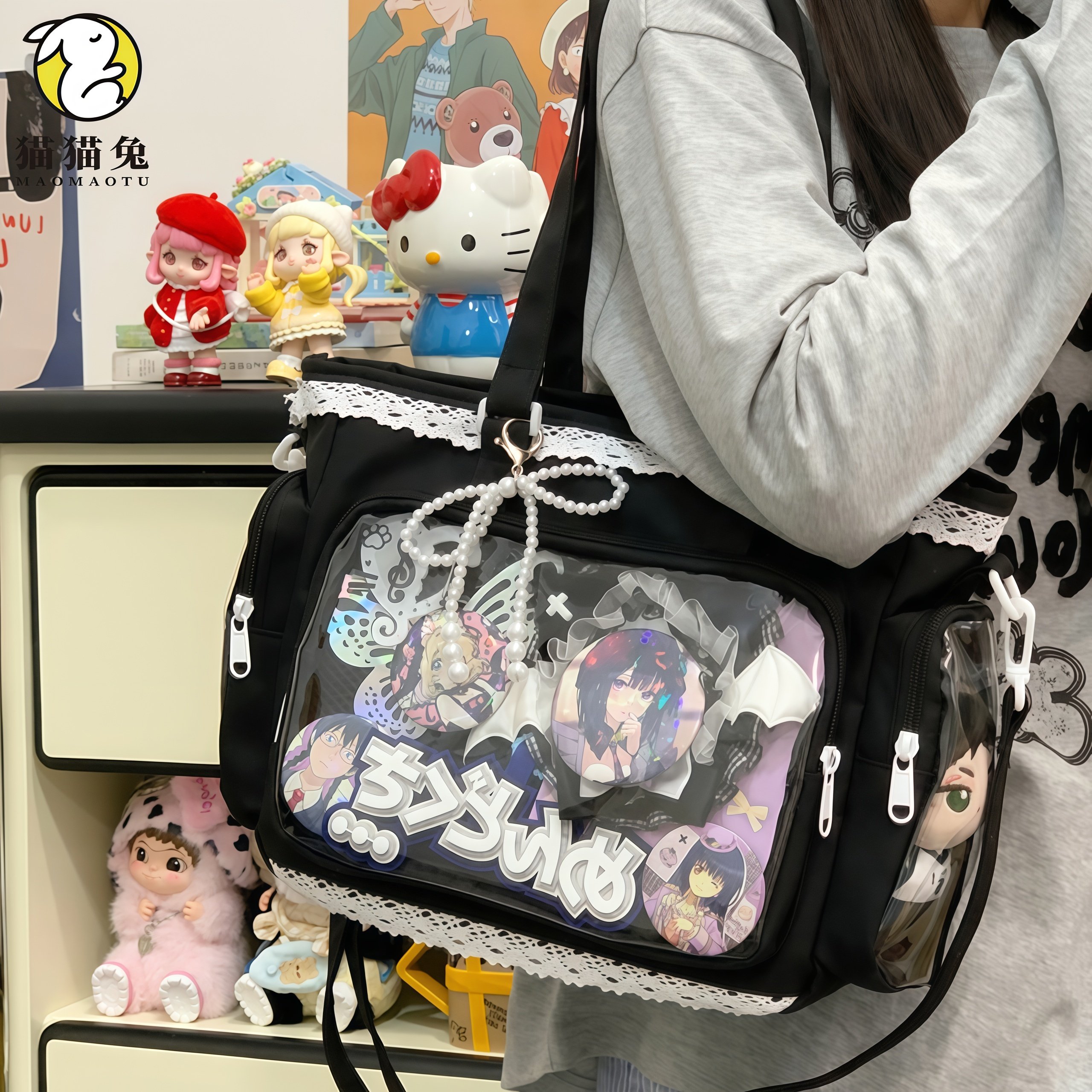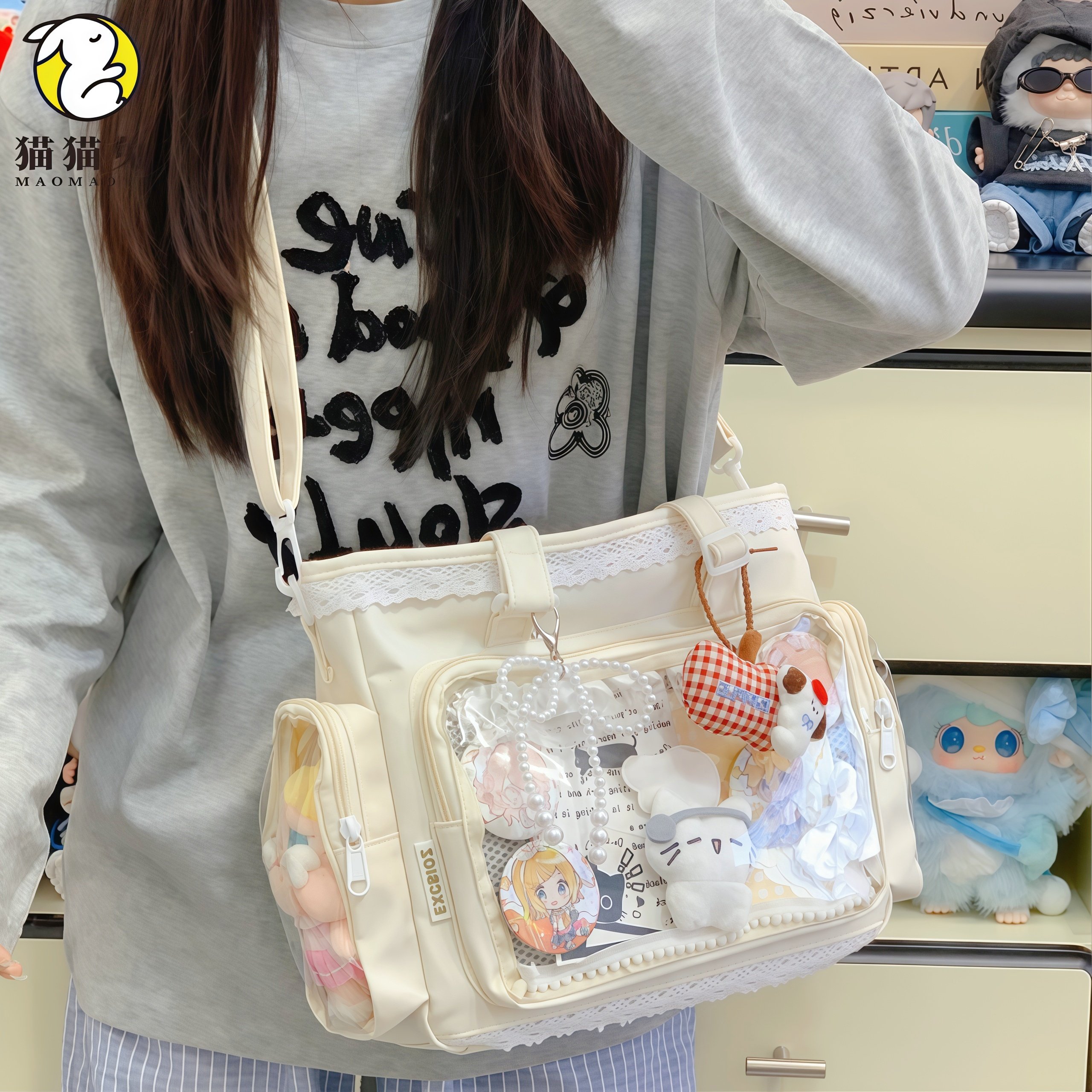 📚 追星二次元痛包女大容量斜挎包包可放10cm娃包透明层红色单肩挎包
