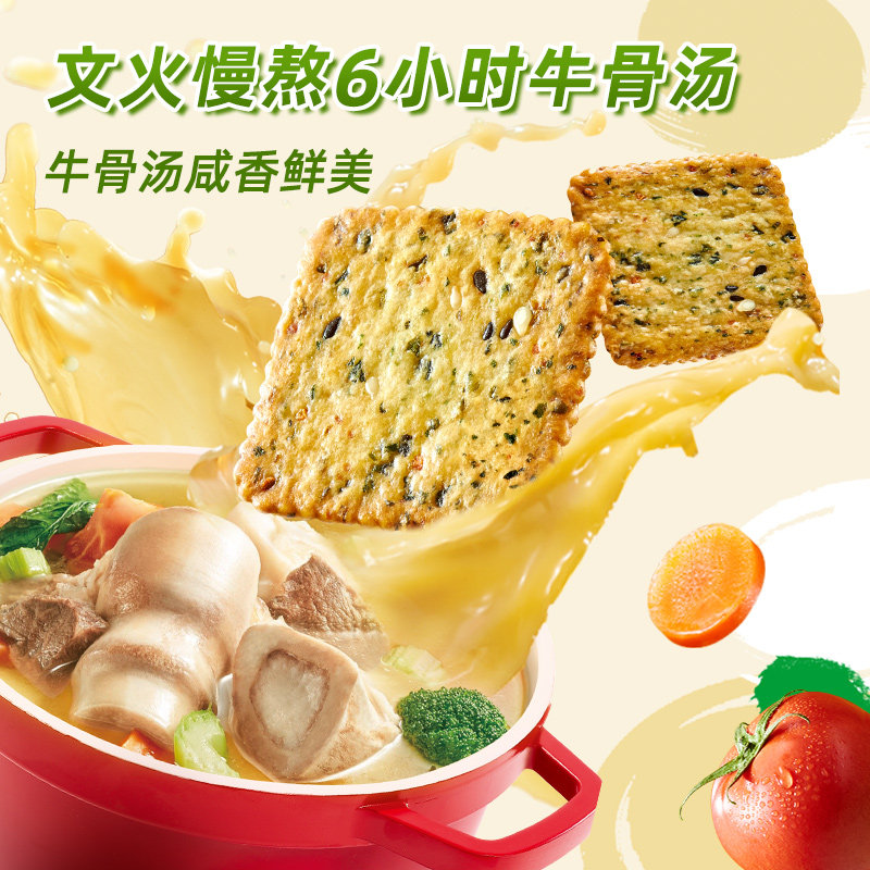 📚 伟龙饼干 十蔬骨汤蔬菜薄饼180g 补充膳食纤维营养早餐饼干小零食
