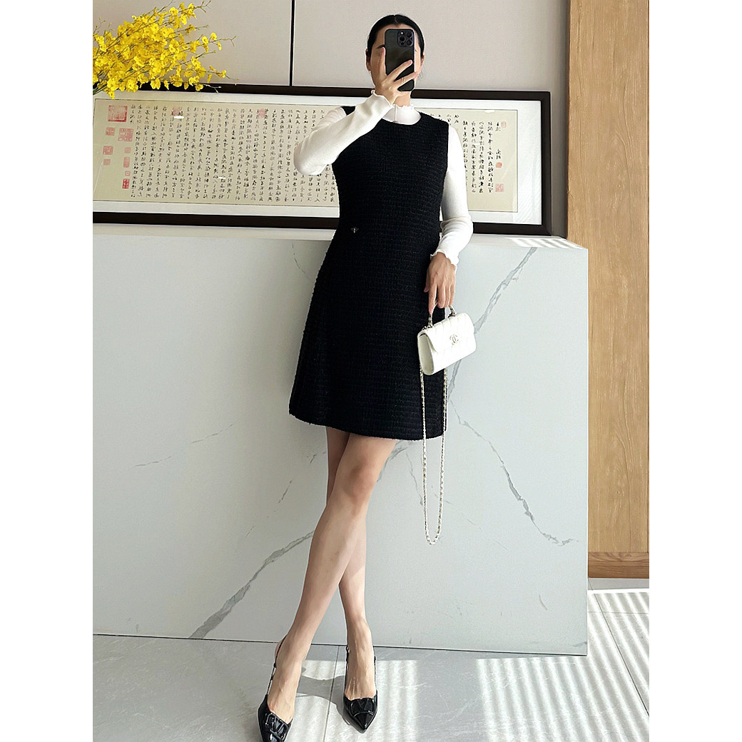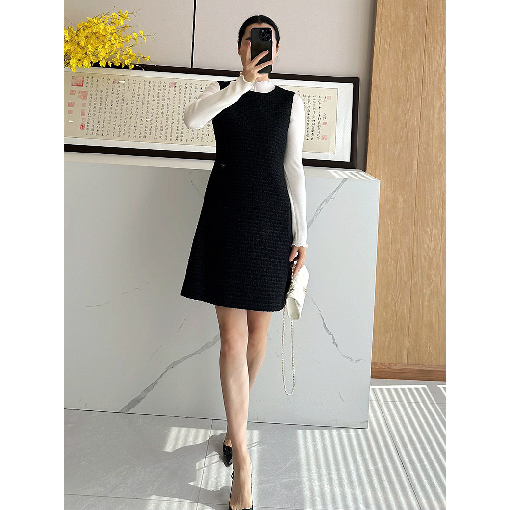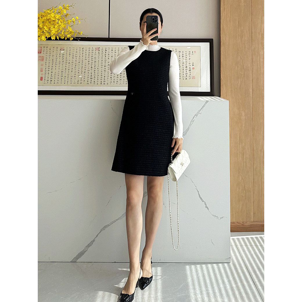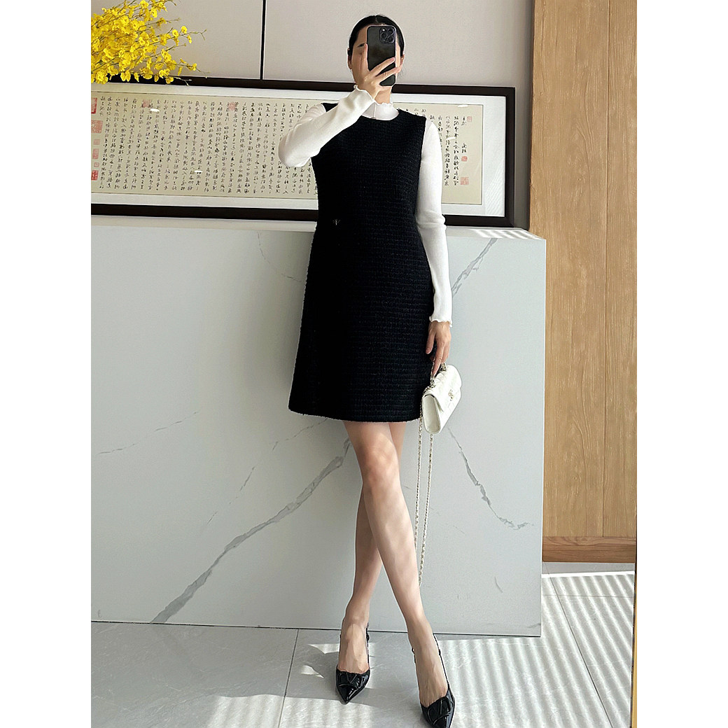 📚 C4631 时尚巴黎的老店 高及货!刺绣小蜜蜂 金丝粗花呢香风背心裙