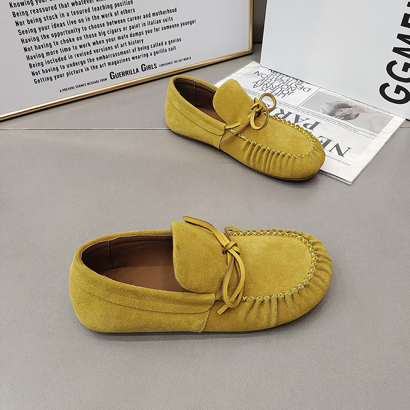 📚 TTRR正品豆豆鞋平底圆头拼接绑带复古风休闲女鞋2026春款透气百搭