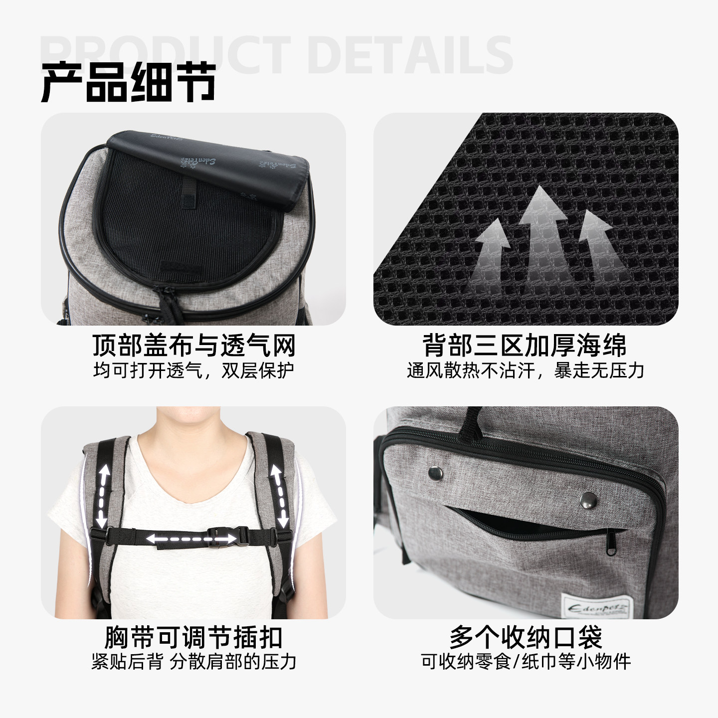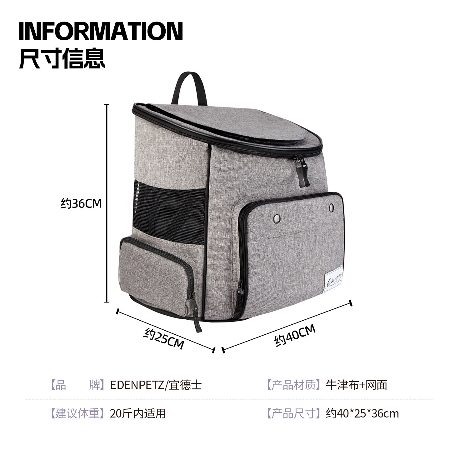 📚 EDENPETZ宜德士宠物双肩背包外出便携猫包登山包狗狗猫咪大容量