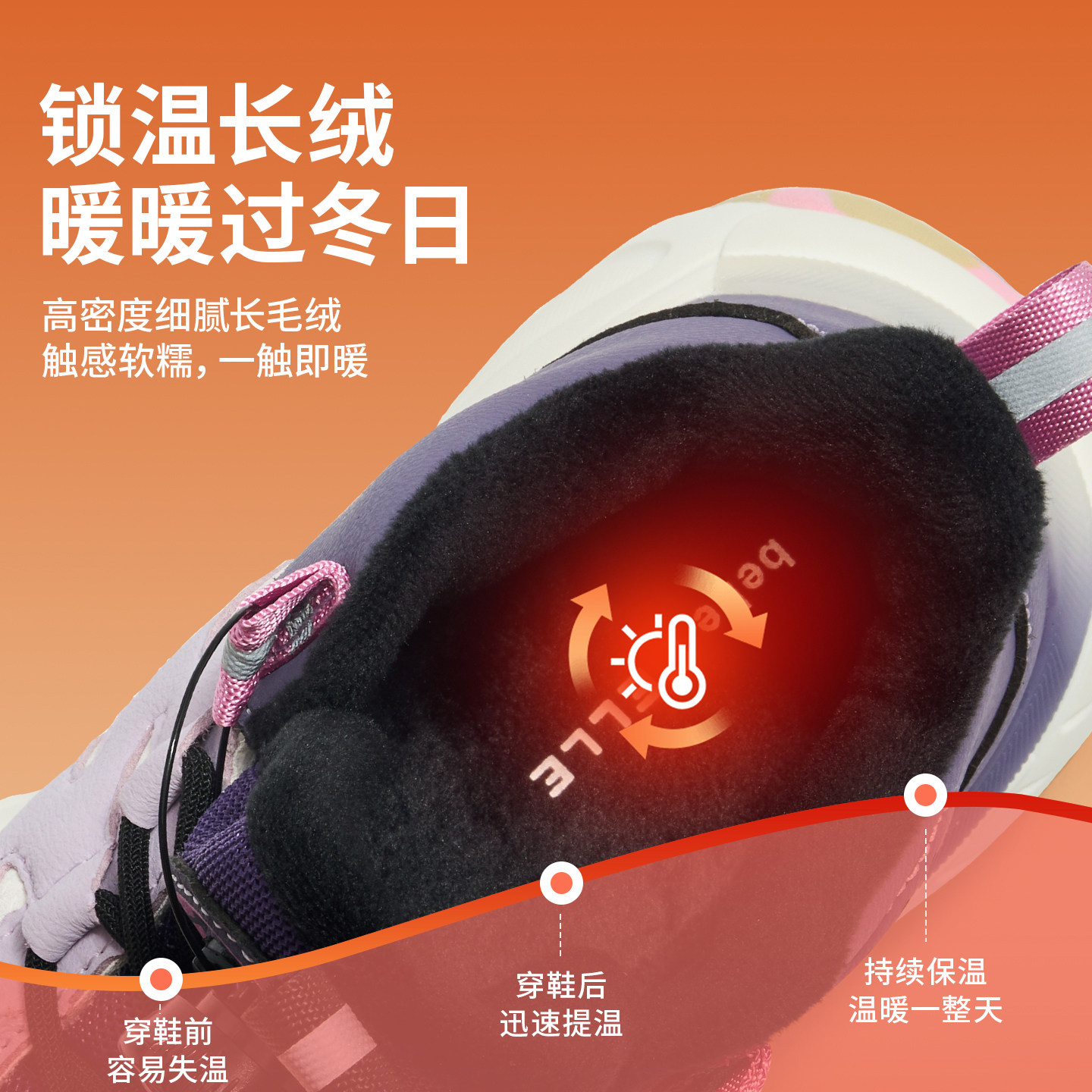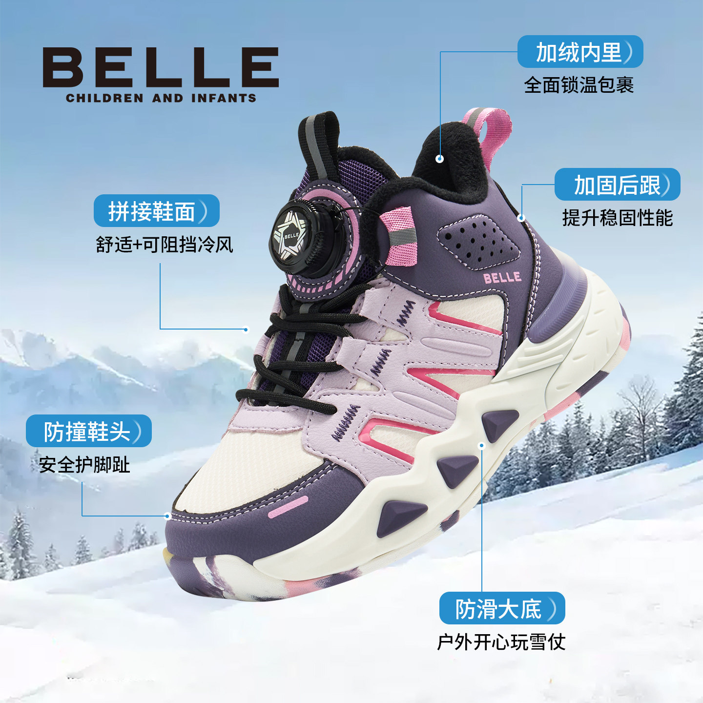 🔍特别值得一提的是它的保暖性能。这款鞋子加入了加绒设计,即使在寒冷的冬季,也能让小朋友们感到温暖。而且,高帮设计可以更好地保护脚部,防止摔倒。
