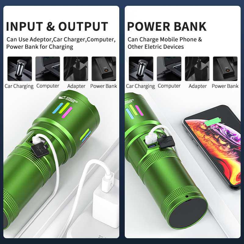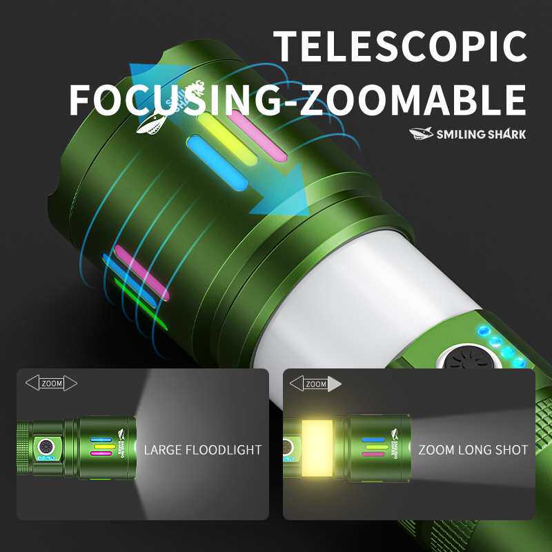 📚 Multifunctional dual light flashlight telescopic camping lig