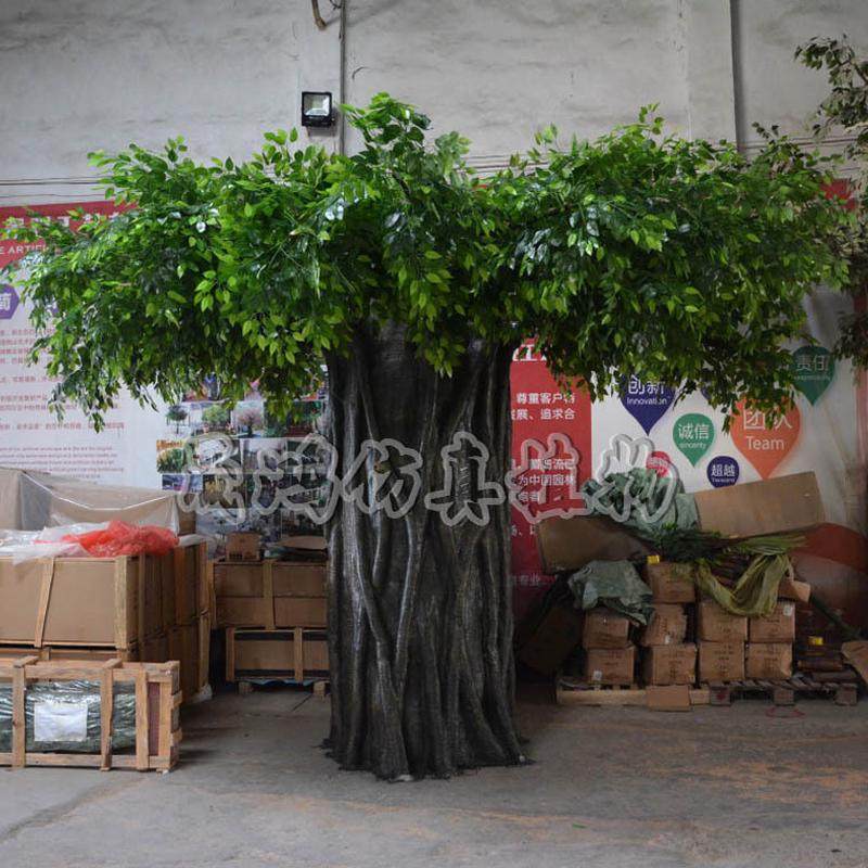 📚 仿真榕树叶绿色室内装饰假树杆假树树枝榕树盆栽大型仿真树假