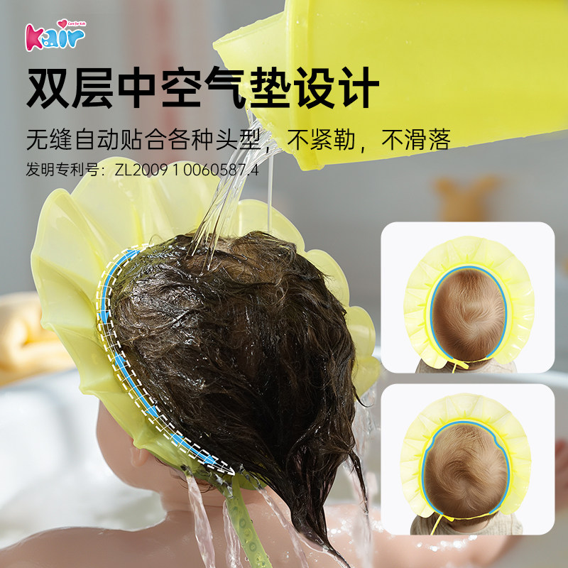 📚 Kair双层中空气垫宝宝洗头帽婴儿洗头神器儿童洗澡防水护耳挡水帽