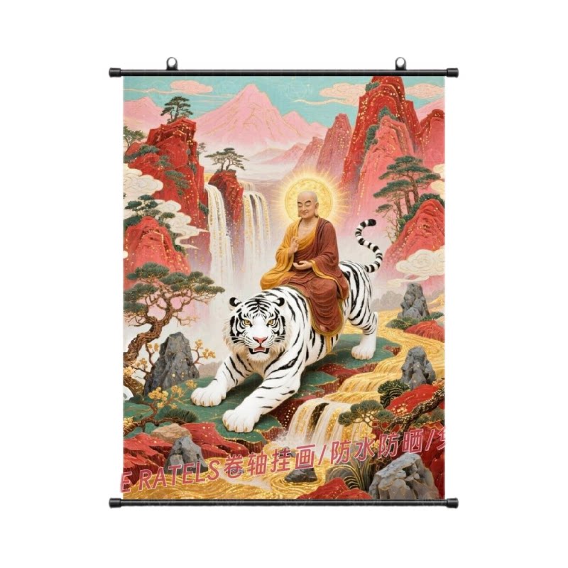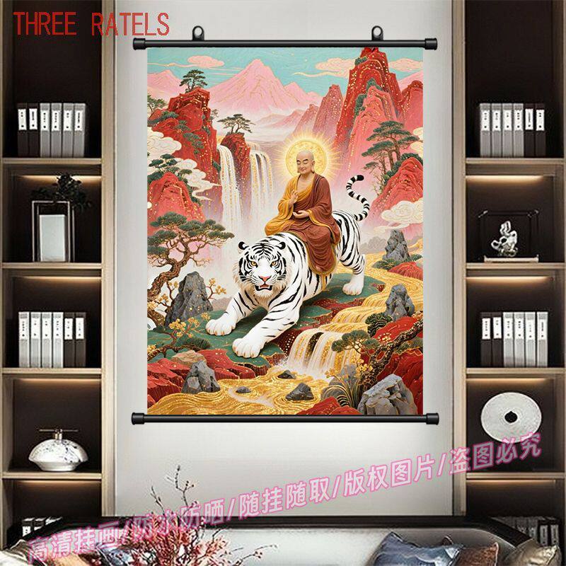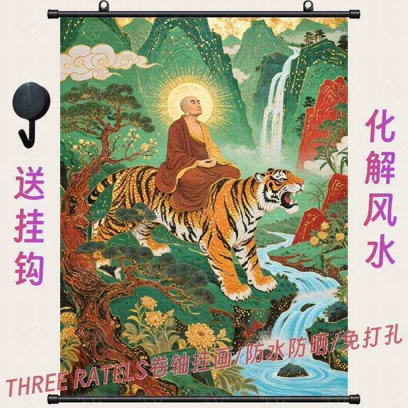 📚 伏虎罗汉降服老虎画像装饰化解风水镇宅挂墙上房间门家居平安挂饰