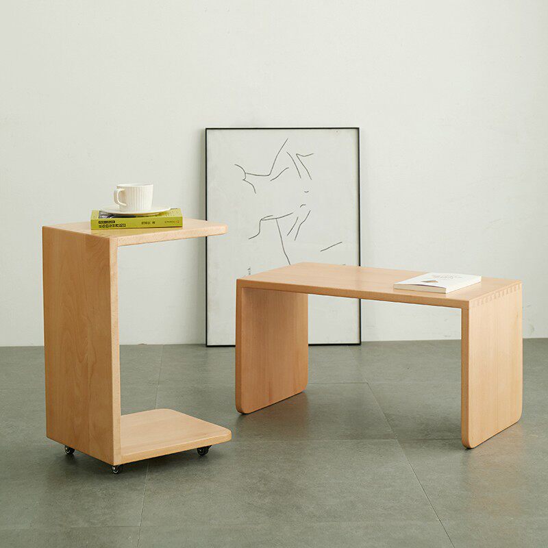 📚 沙发边几窄长可移动C型边几角几实木北欧简约小桌子角几带轮木