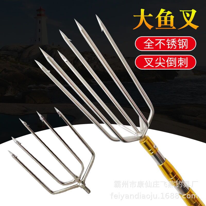 📚 不锈钢鱼叉大倒刺鱼叉叉头老式鱼叉圆形鱼叉伸缩定位鱼叉杆槟榔杆