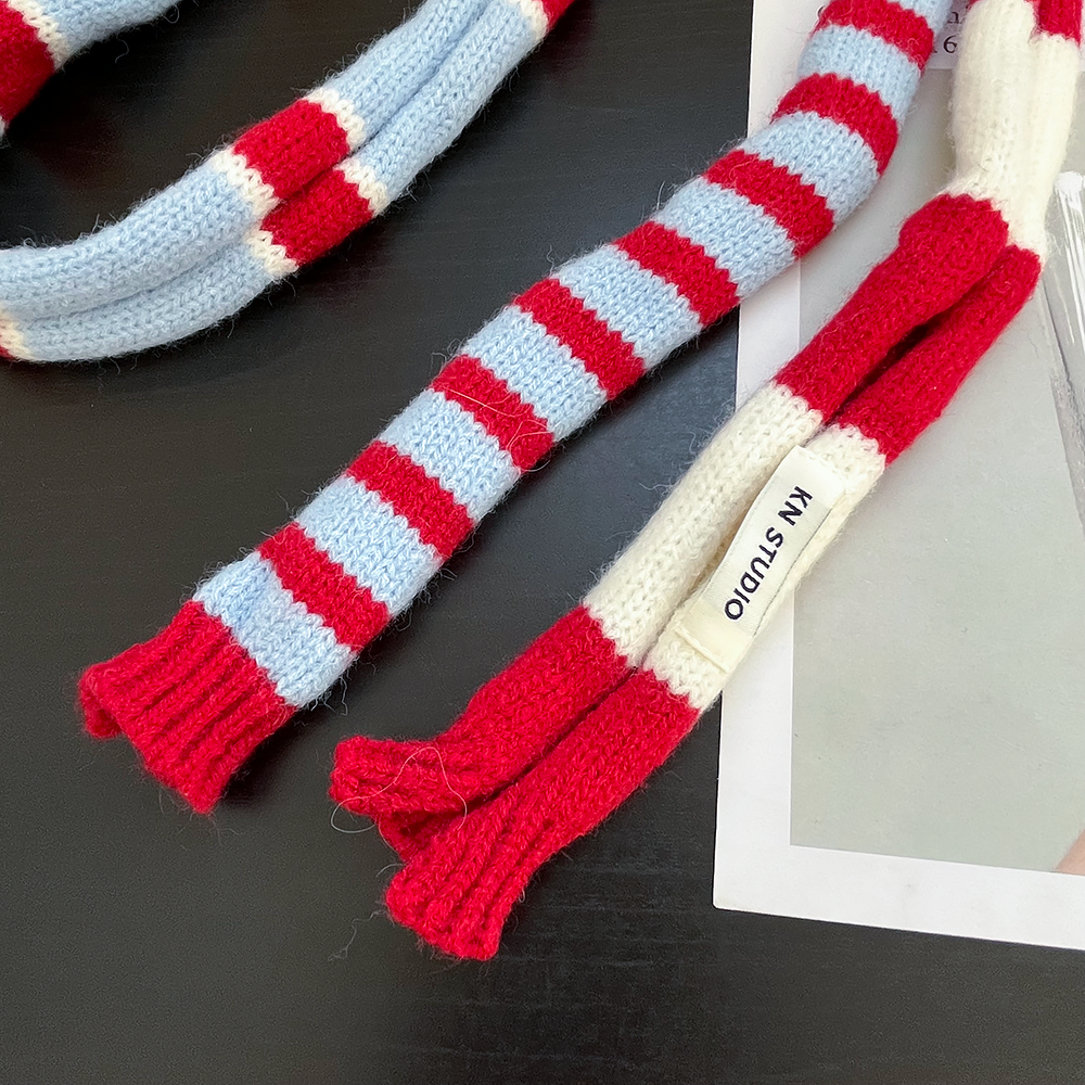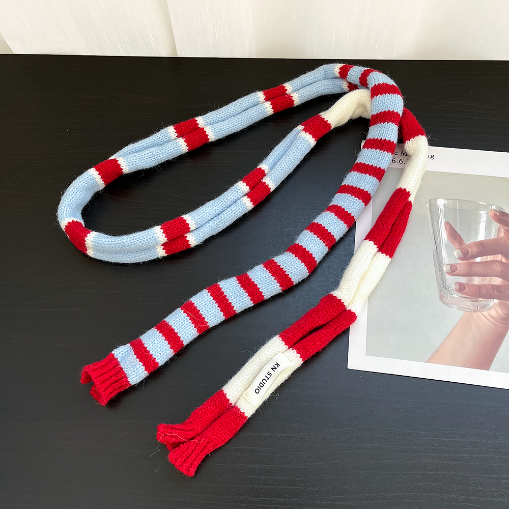 📚 赵昭仪同款红白蓝条纹窄围巾女秋冬季复古拍照穿搭细长条腊肠围脖