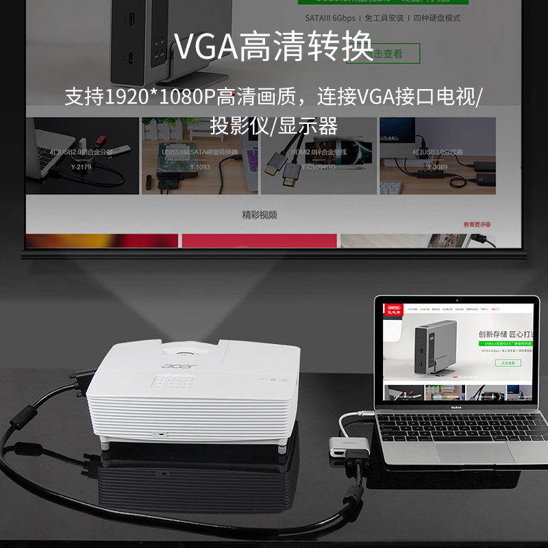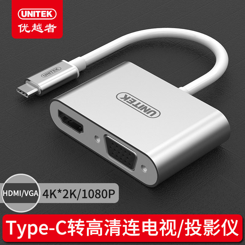📚 优越者Type-c转VGA+HDMI转换线macbook pro转接口转HDMI/VGA