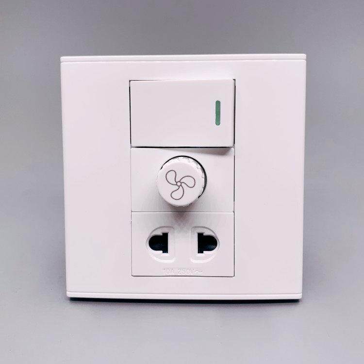 📚 一开调速带二孔插座 单联一位双控+风扇开关+二孔电源插座 暗装86