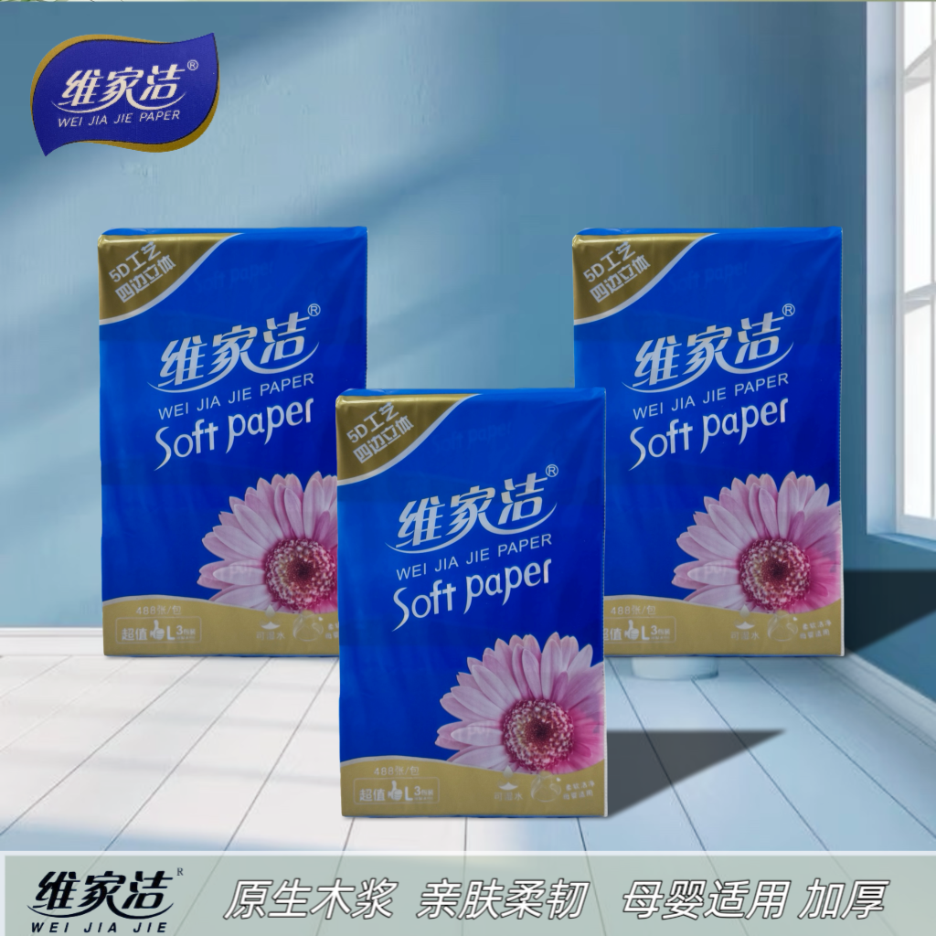 📚 维家洁抽纸9包经典加厚商用488家用卫生纸餐巾纸纸巾面巾纸实惠