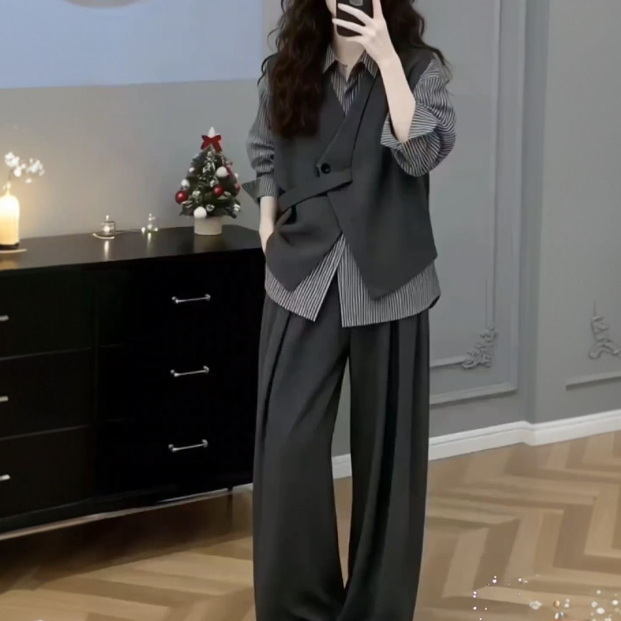 29¥ CZ007 HKJyUukfrge¥ https://m.tb.cn/h.i2k1Tb5 2026春季新款时尚套装气质轻奢感轻熟通勤衬衫灰色马甲长裤三件套 --------------------- 【原售价】129元 【现售价】129元。
