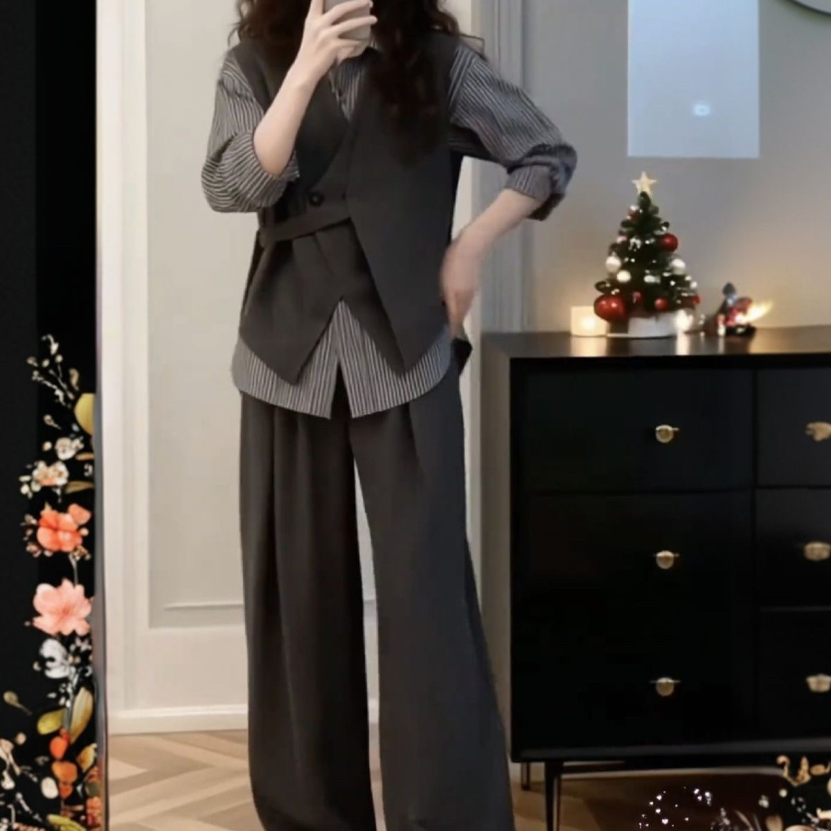 📚 2026春季新款时尚套装气质轻奢感轻熟通勤衬衫灰色马甲长裤三件套