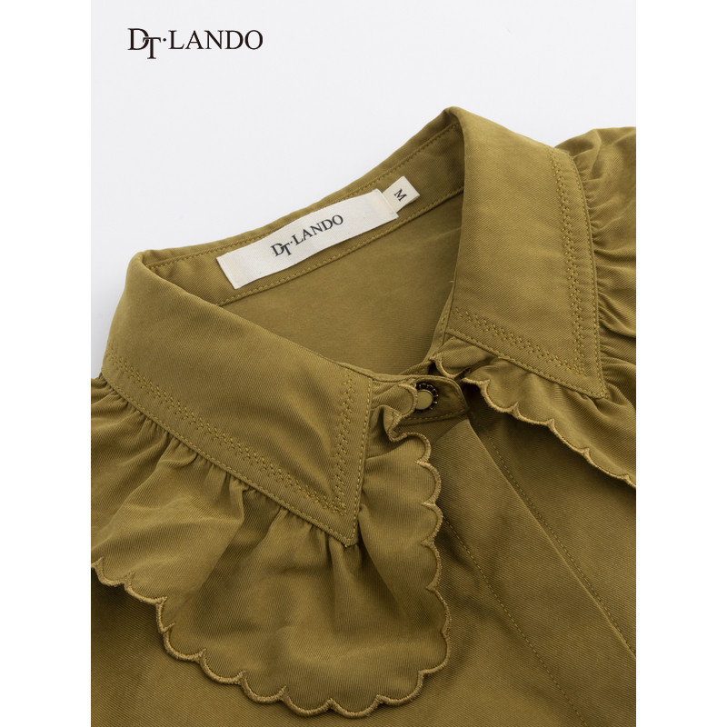 📚 DTLANDO冬季女装精致优雅花边衬衣长袖复古款设计师品牌衬衫外套