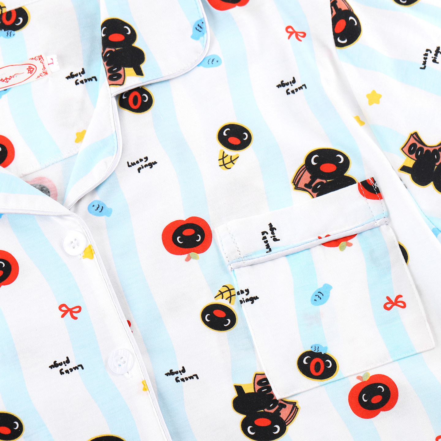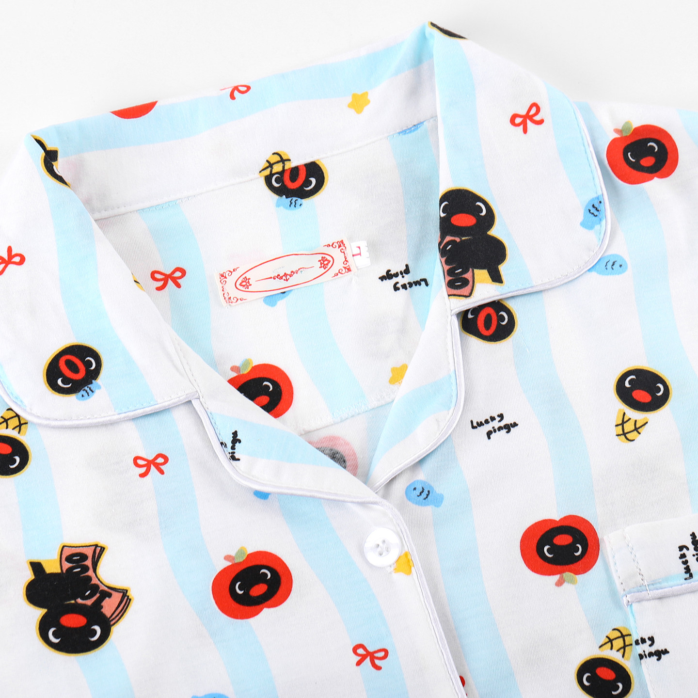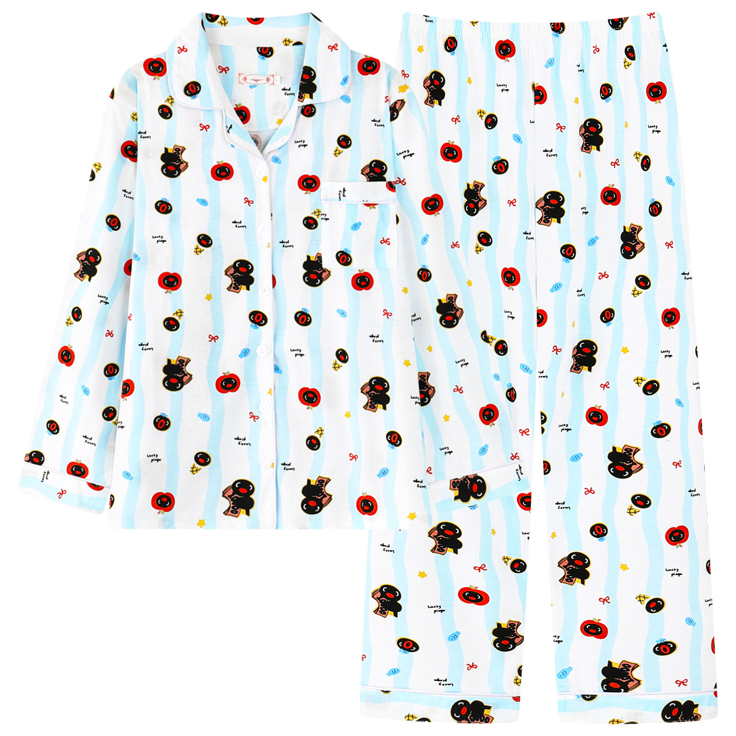 📚 企鹅pingu睡衣女秋长袖春秋季纯棉可爱卡通宽松蓝色条纹家居服