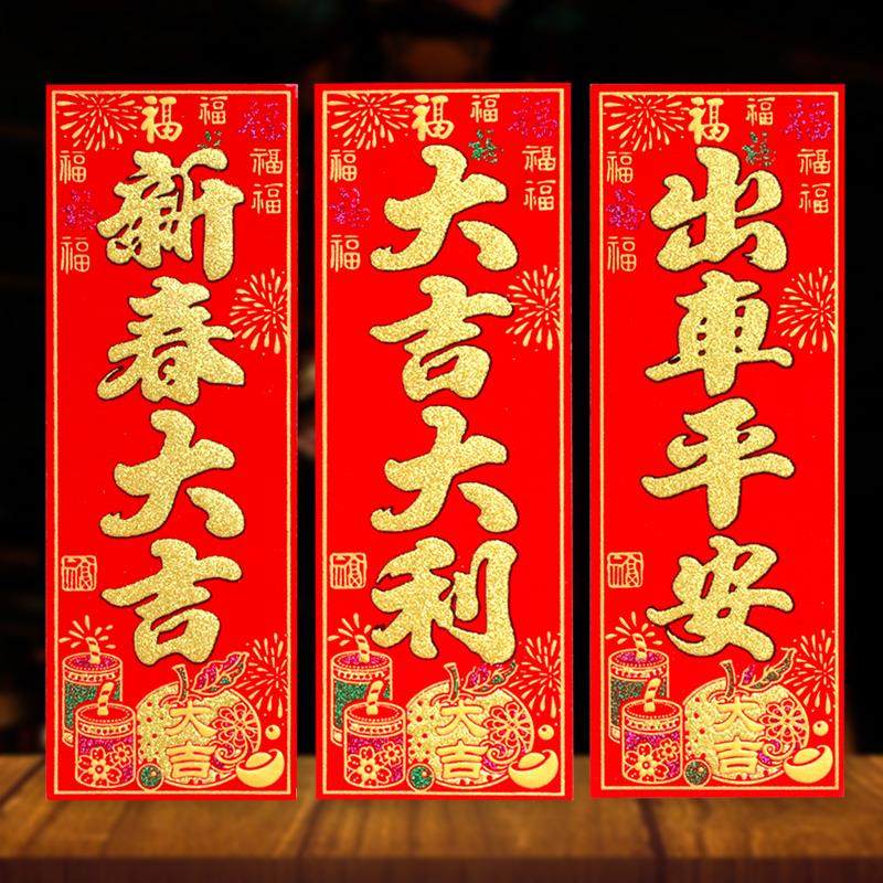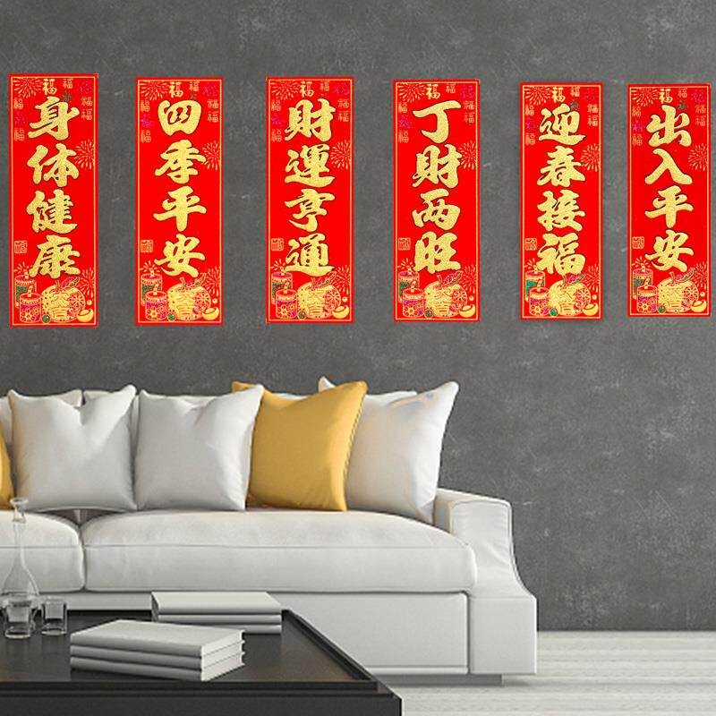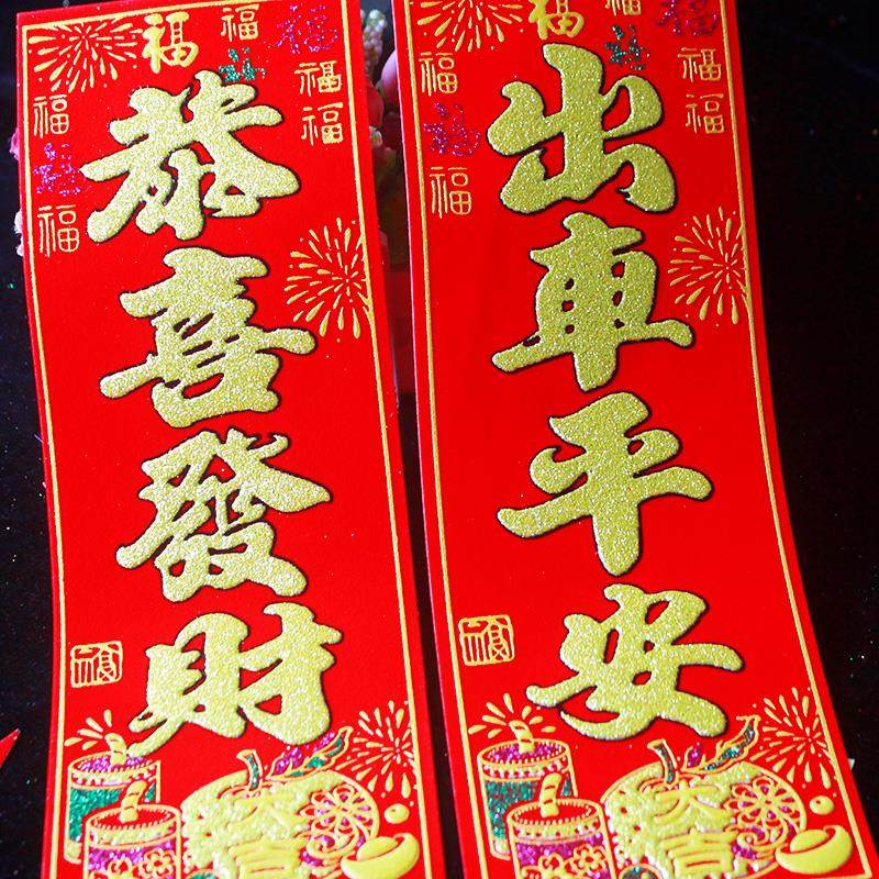 📚 春节绒布挥春新年装饰四字竖批财运亨通丁财两旺老少平安小对联
