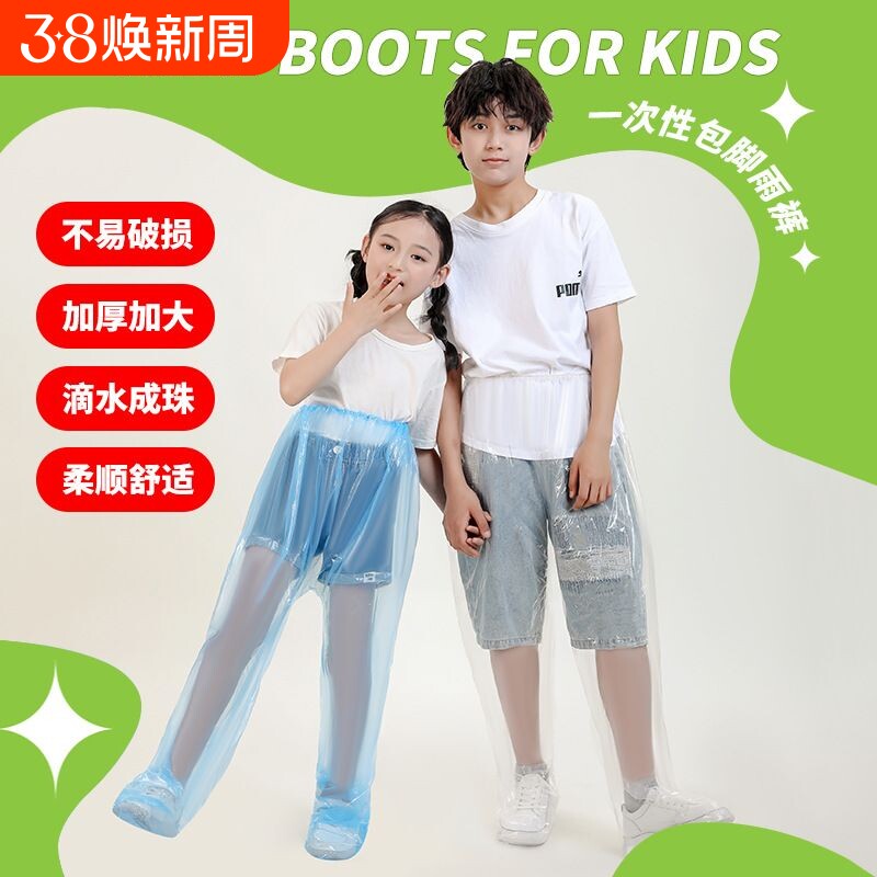 📚 儿童一次性便携雨衣雨裤连鞋雨裤下半身脚套防水大码加厚漂流分体