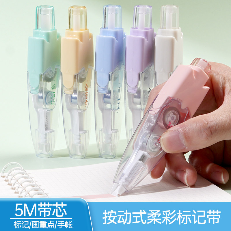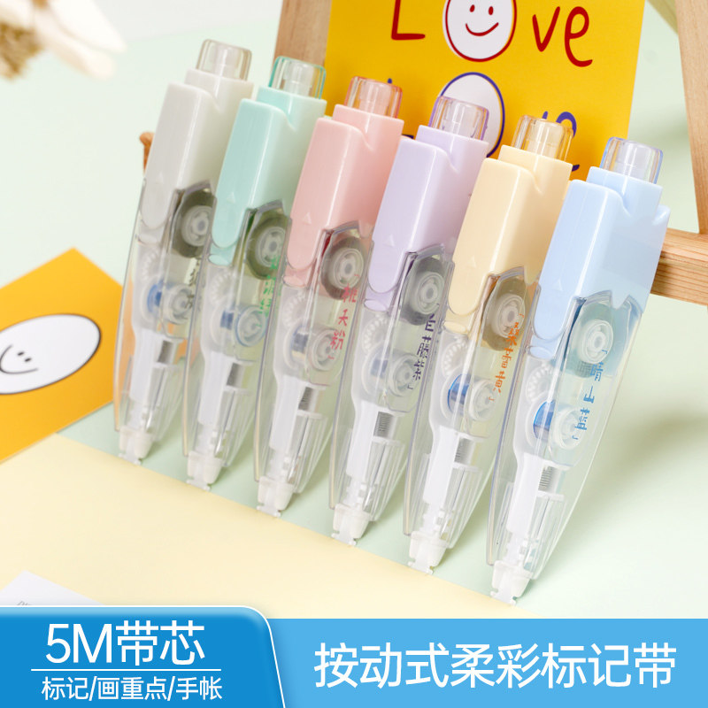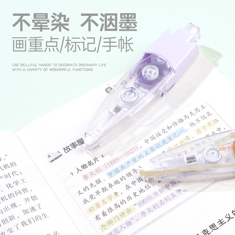 📚 笔式按动修正带小学初中生专用荧光标记笔学生用女生高颜值修正贴大容量标记带彩色手帐笔儿童可爱手账修改带