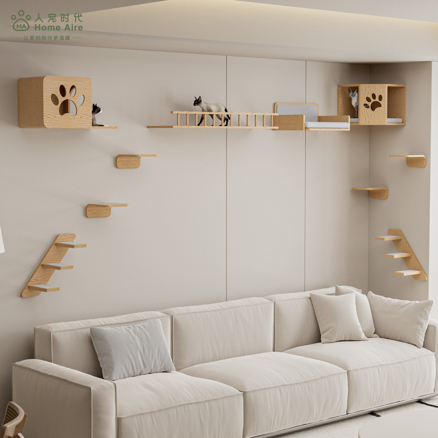 📚 Homeaire设计师猫爬架猫沙发步梯上墙爬架挂壁式猫窝转角猫屋猫墙