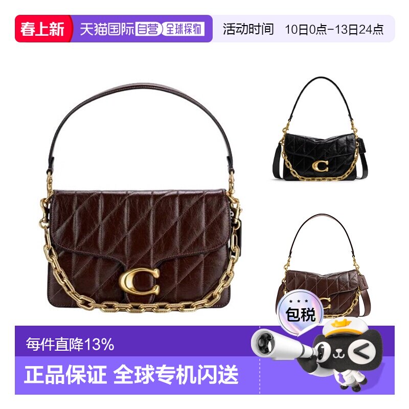 📚 香港直邮COACH蔲驰女款Chain 26单肩手提包金色徽标牛皮革中号
