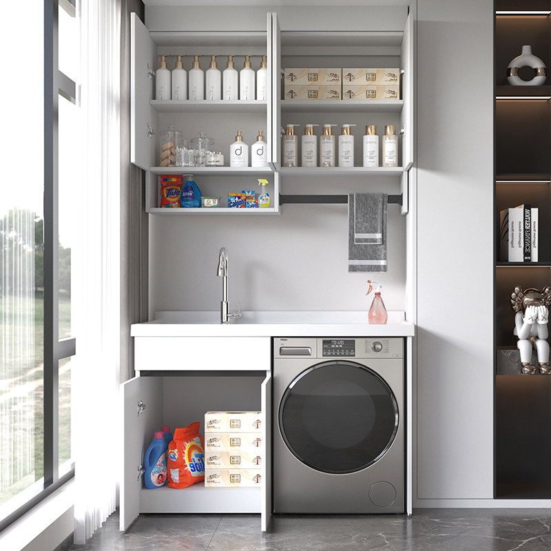 📚 新款蜂窝大板全铝洗衣柜滚筒洗衣机柜组合人造石英石洗衣池一体柜