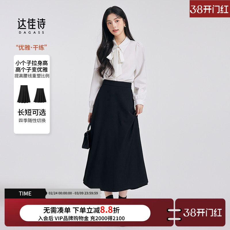 📚 达佳诗教资面试黑色a字半身裙女春秋新款正装西装裙伞裙长款裙子