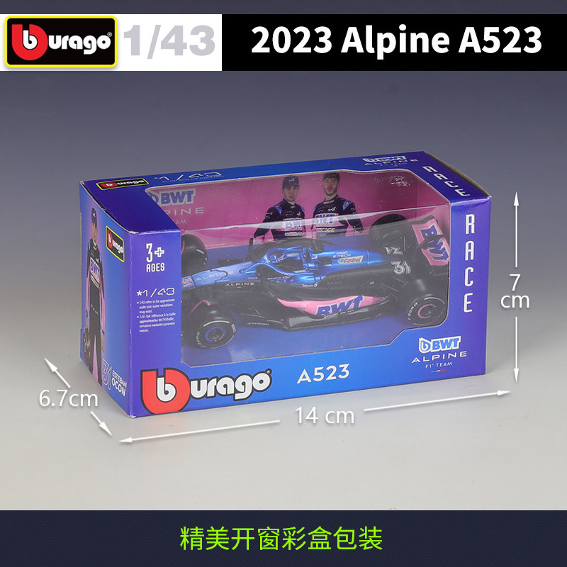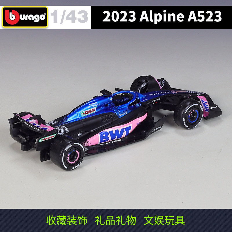 📚 比美高1:43F1Alpine车队2023赛季 A523赛车仿真合金汽车成品模型