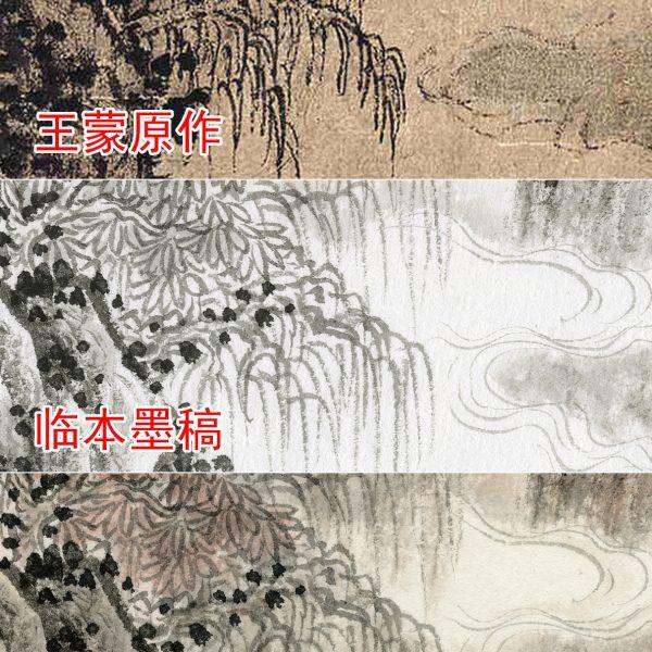 📚 王蒙涤砚图微喷打印元四家山水画临摹绢布画稿传统山水画范本