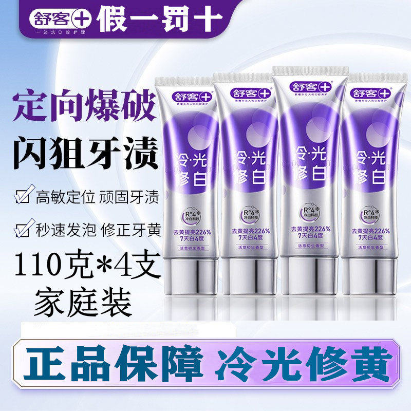 📚 舒客冷光修白牙膏美白去黄去口臭成人清新口气不含氟牙膏家庭装