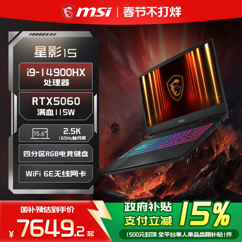 #政府补贴 #MSI #微星星影 #高性能笔记本电脑 #RTX5060满血显卡 #电竞学生游戏本 #券后狂欢