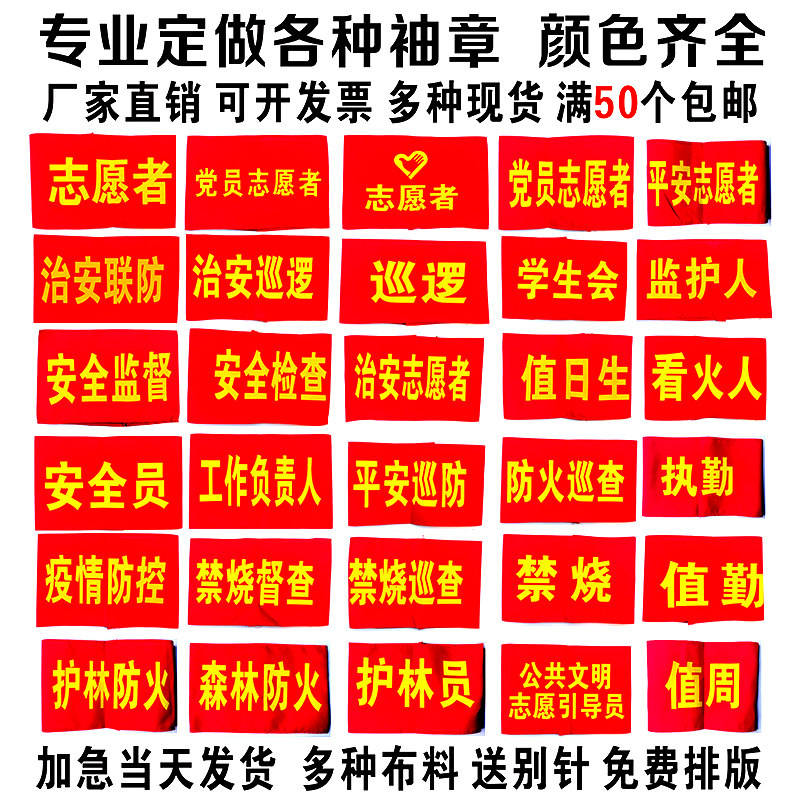 📚 袖章订做魔术贴红袖章定制志愿者巡逻执值勤安全员袖标值日定做