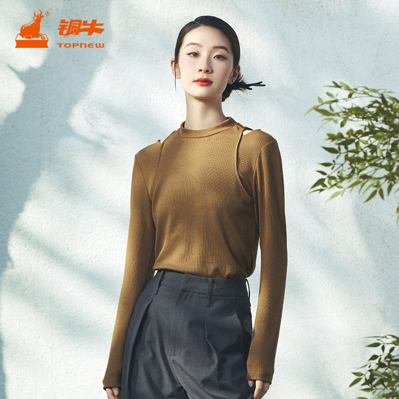 📚 铜牛bless系列细条罗纹布假两件女打底衫 秋季长袖衫VS301