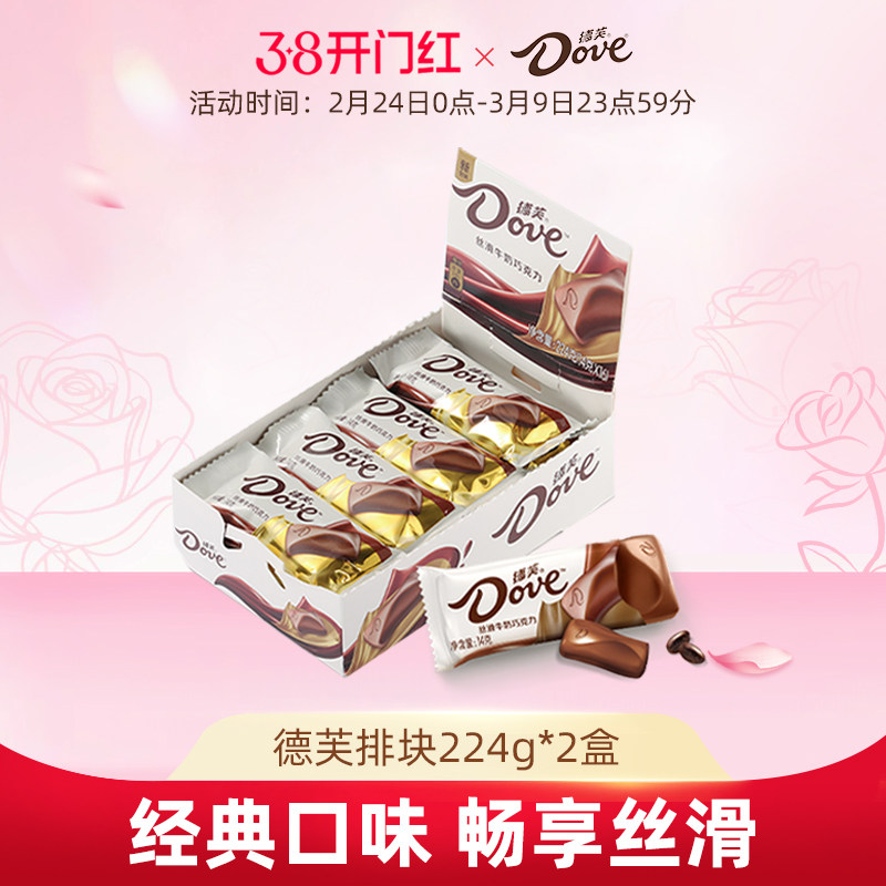 📚 德芙巧克力盒装排块224g巧克力纯可可脂牛奶巧克力黑巧白巧零食