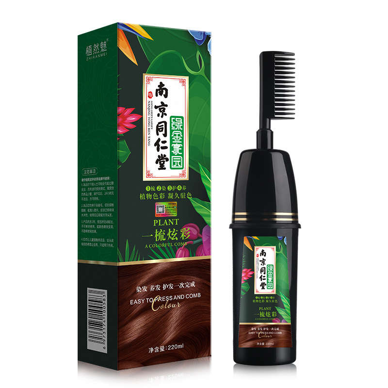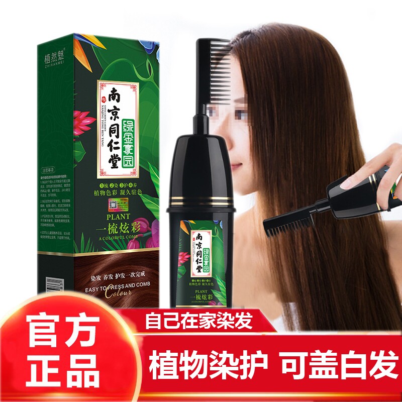 📚 植然魅官方店南京同仁堂绿金家园纯植物一梳彩染发膏一梳黑染发剂