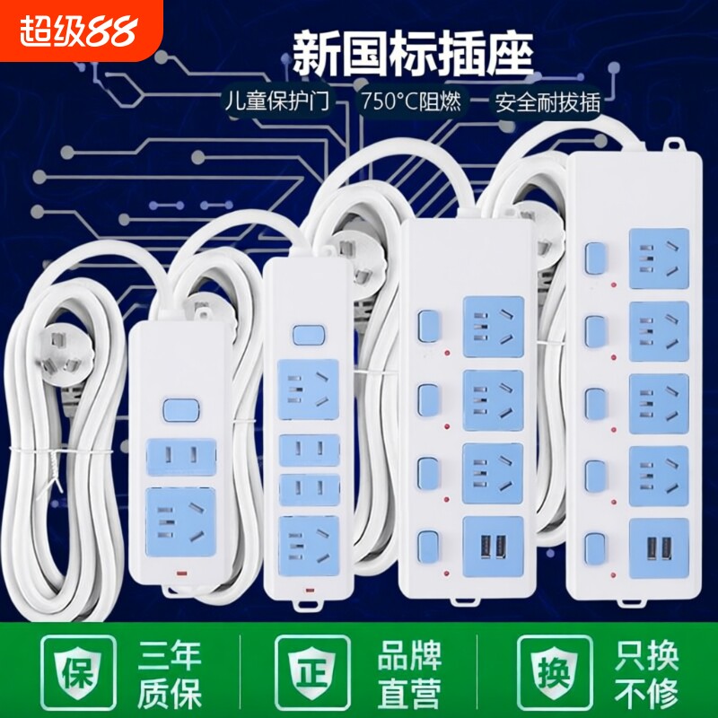 📚 柏林豪纯铜插座排插带线家用开关接线板无线插线板大功率安全插位