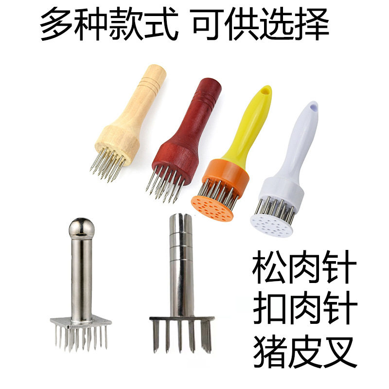 📚 不锈钢扣肉叉猪皮插铝合金肉锤家用打孔松肉针钢钉插肉牛筋叉器具