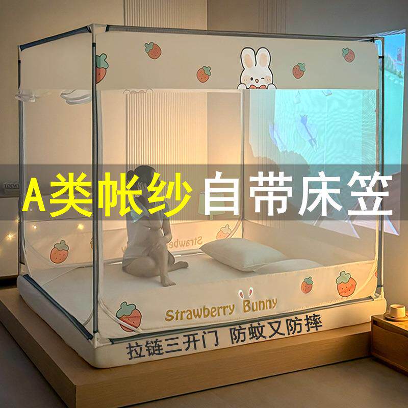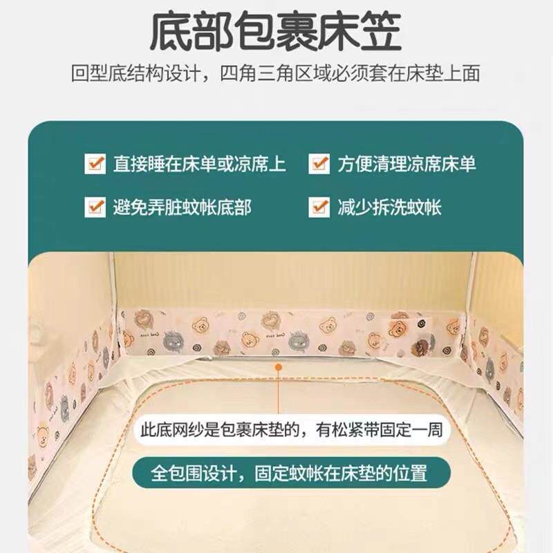 📚 蚊帐2024新款A类儿童防摔回底床笠款纹帐1米5床宝宝防掉床蒙古包
