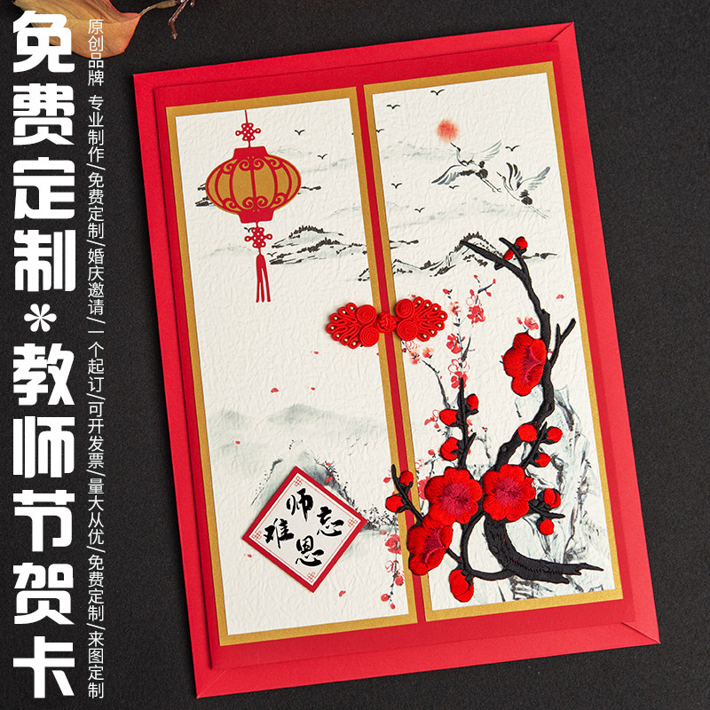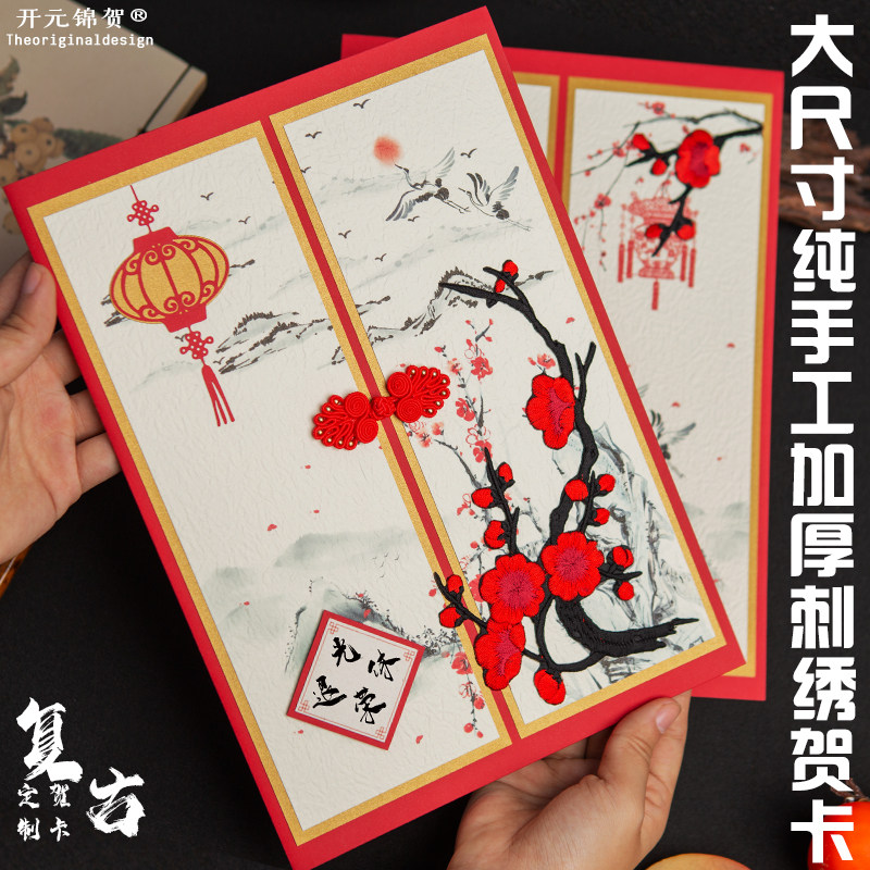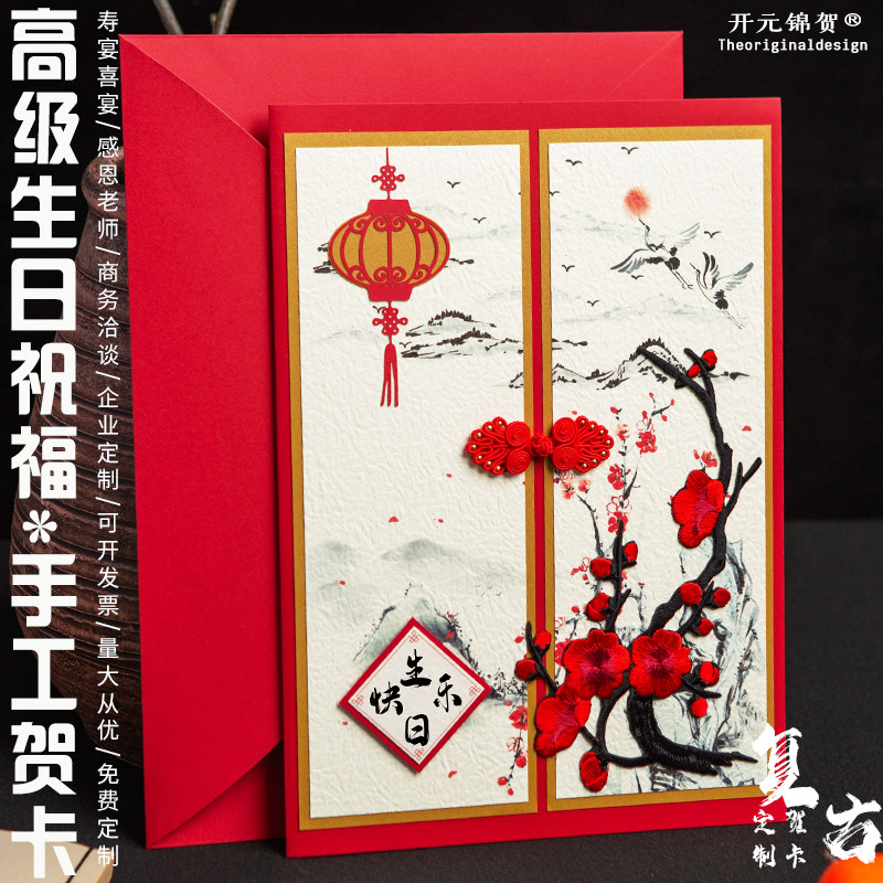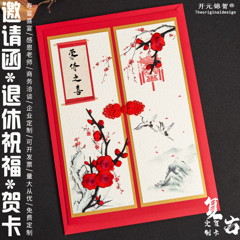 📚 A4国风贺卡新年大尺寸定制退休高级生日新婚感恩老师纪念马年卡片